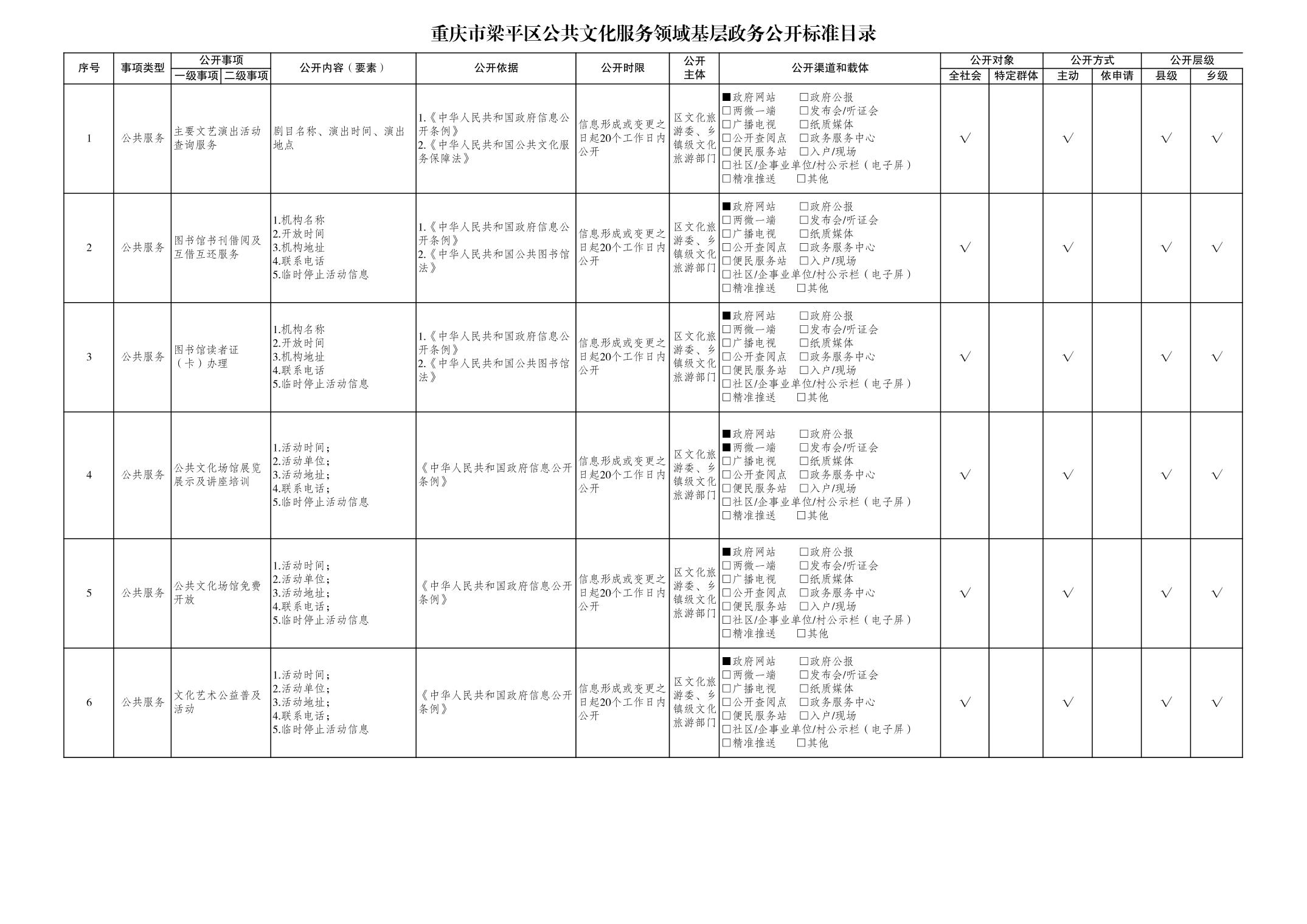 公共文化服務領域基層政務公開標準目錄