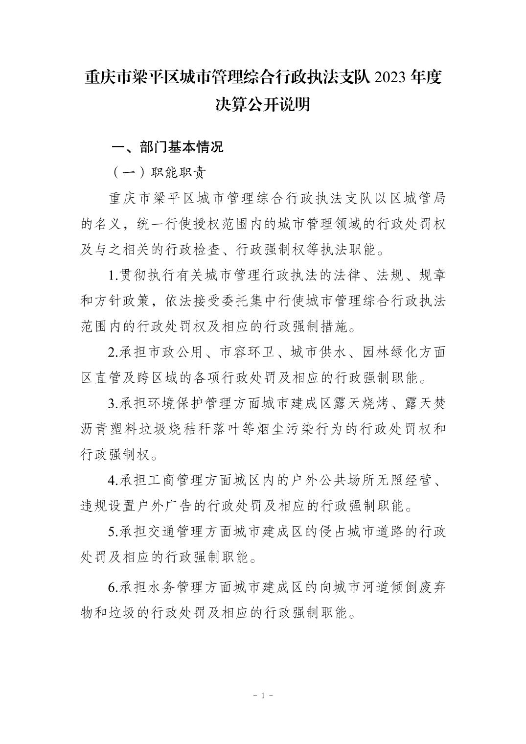 | 標題 | 重慶市梁平區城市管理綜合行政執法支隊2023年度決算公開說明 |