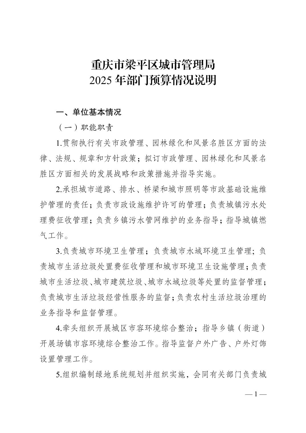 | 標(biāo)題 | 重慶市梁平區(qū)城市管理局2025年部門預(yù)算情況說明 |
