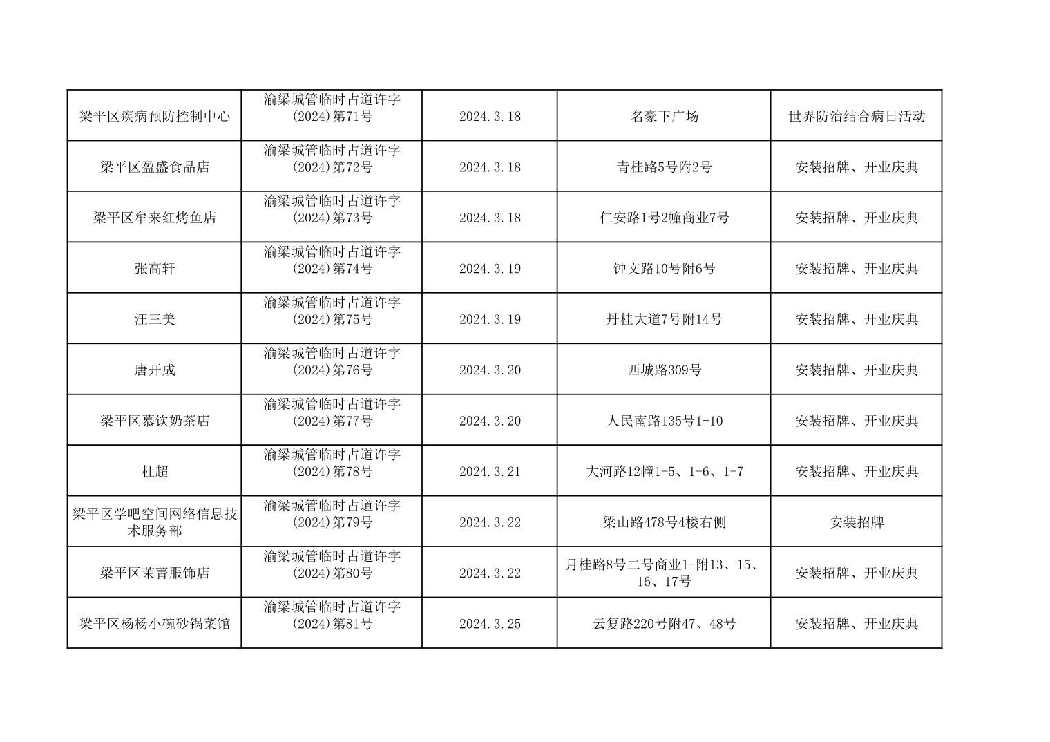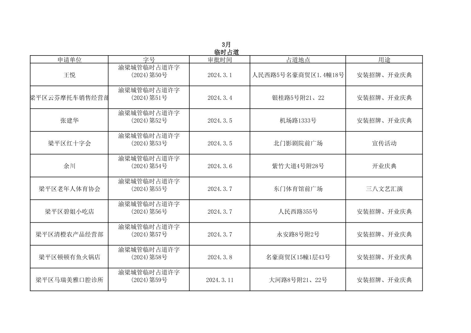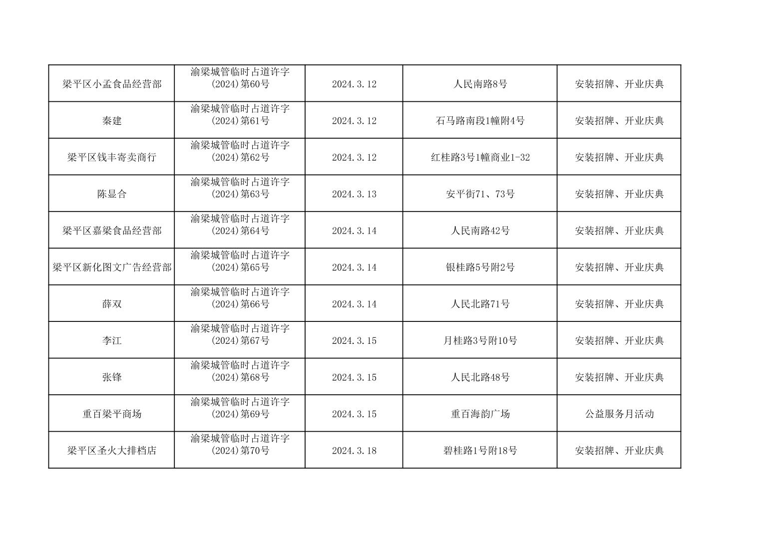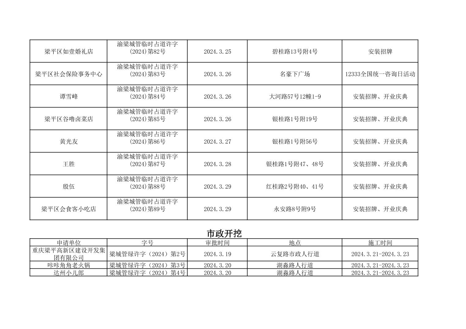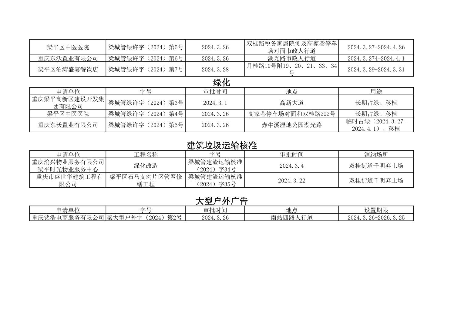 | 標題 | 重慶市梁平區城市管理局2024年行政許可事項第二次公示 |