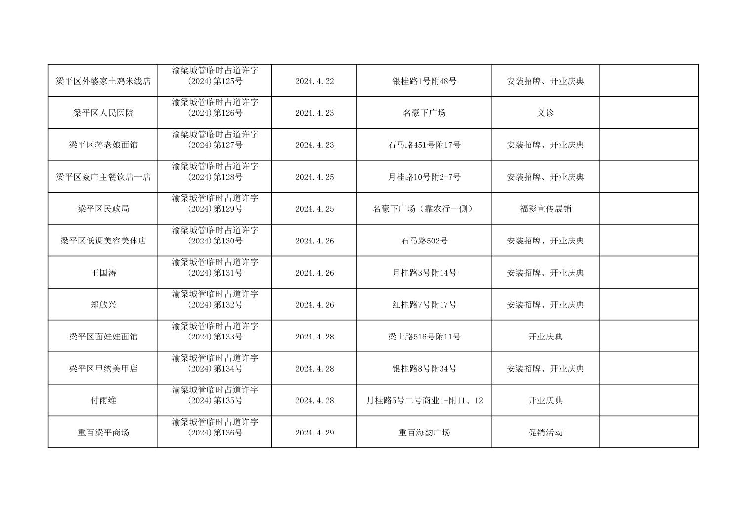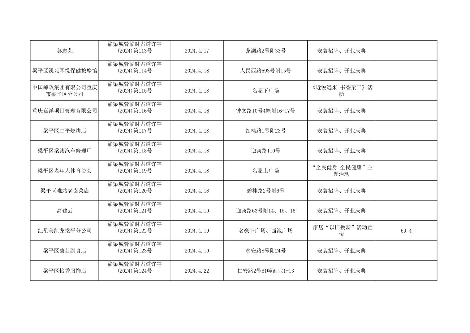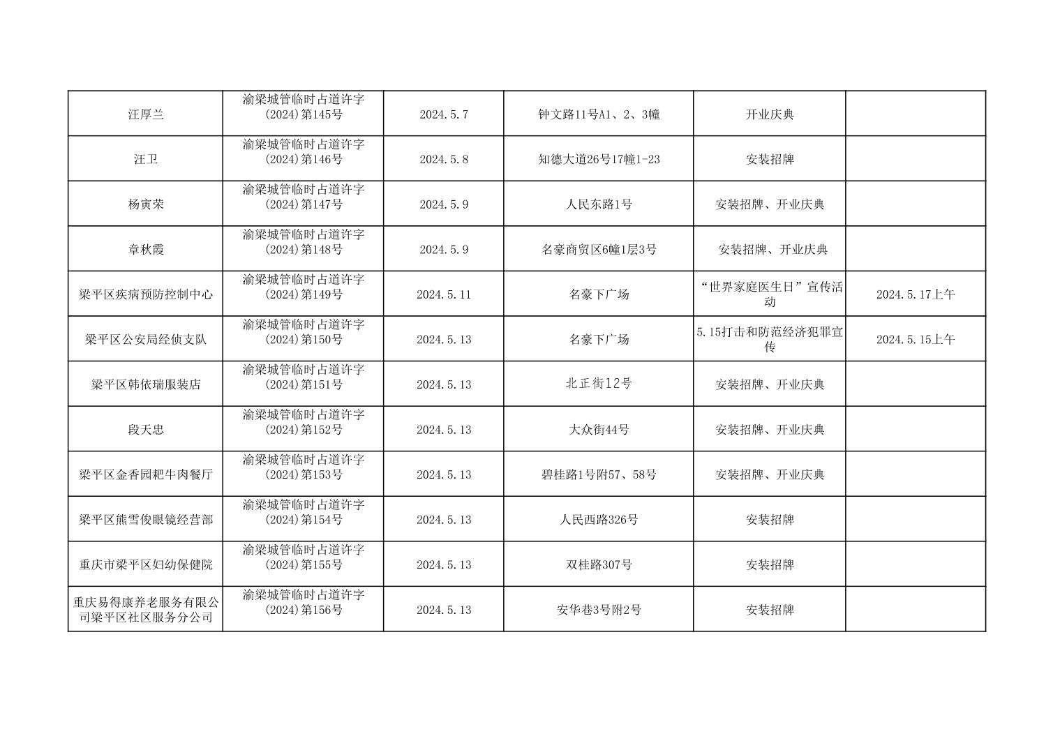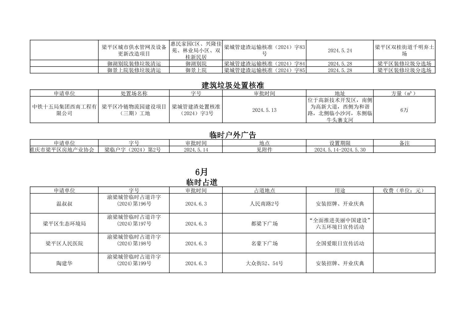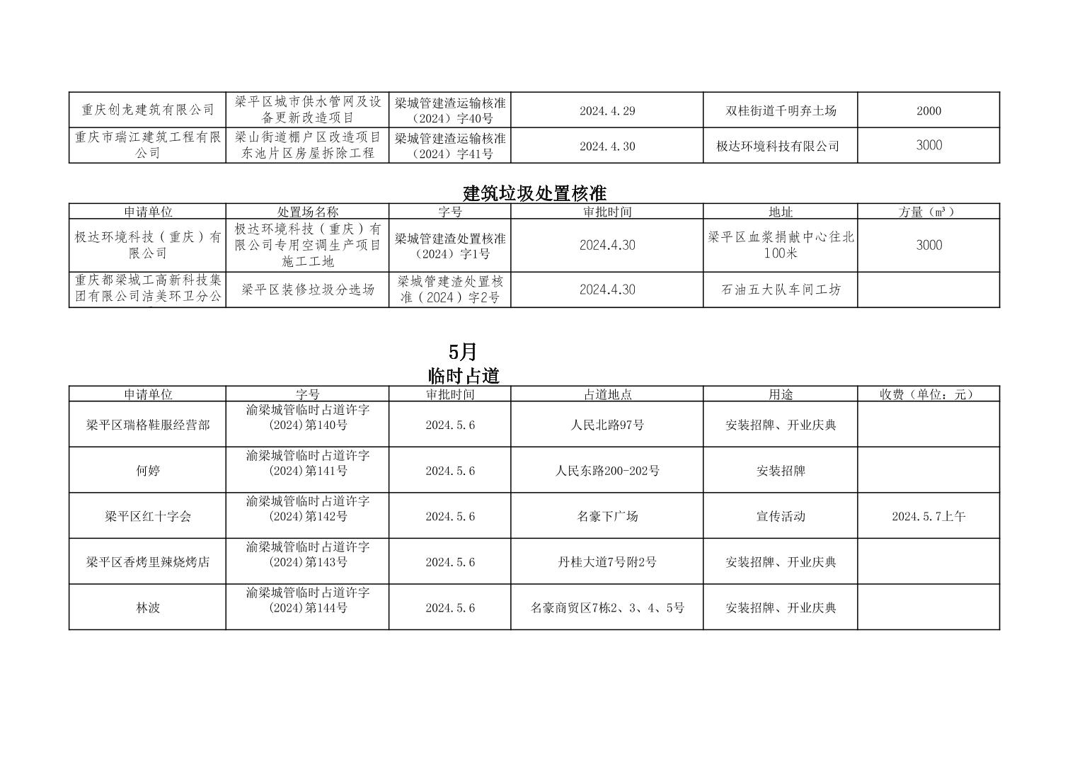 | 標題 | 重慶市梁平區城市管理局2024年行政許可事項第三次公示 |