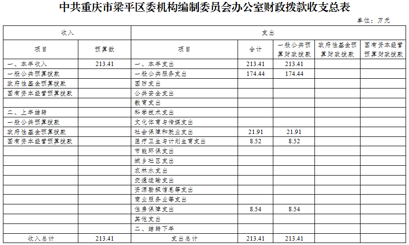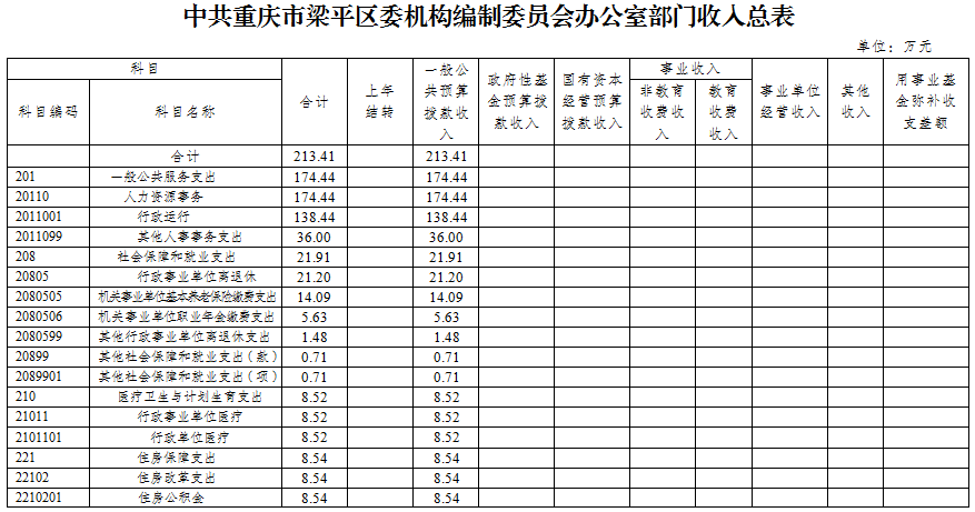 2019年一般公共預算財政撥款收入213.41萬元,一般公共預算財政撥款支出213.41萬元,比2018年增加26.40萬元。其中:基本支出177.41萬元,比2018年增加28.40萬元,主要原因是人員經費增加等,主要用于保障在職人員工資福利及社會保險繳費,退休人員補助等,保障部門正常運轉的各項商品服務支出;項目支出36.00萬元,比2018年減少2.00萬元,主要原因是嚴格控制項目經費支出等,主要用于行政審批制度改革、黨政機關機構改革、黨政機關網站開辦審核及管理、政務和公益機構域名注冊等重點工作。