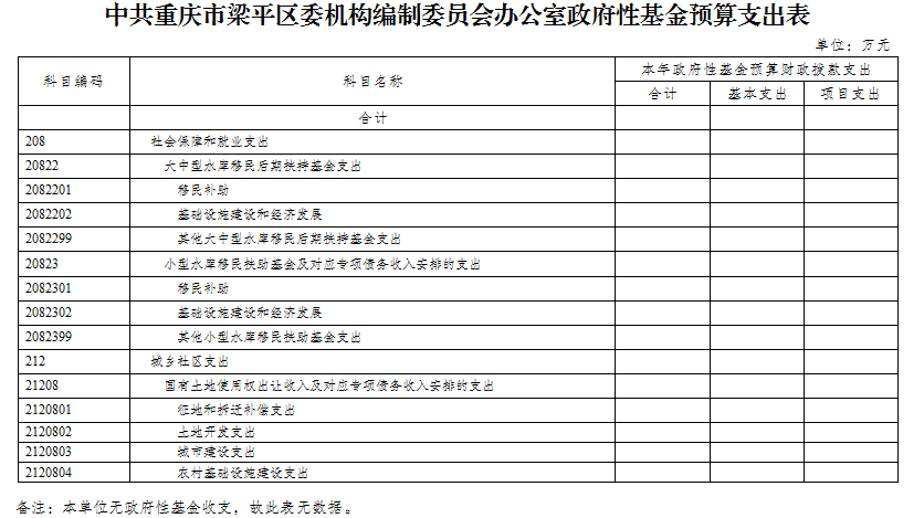 中共重慶市梁平區委機構編制委員會辦公室2019年未使用政府性基金預算撥款安排的支出。