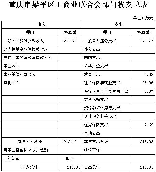 | 標(biāo)題 | 重慶市梁平區(qū)工商業(yè)聯(lián)合會(huì)2019年部門預(yù)算情況說(shuō)明 | ||