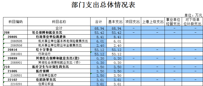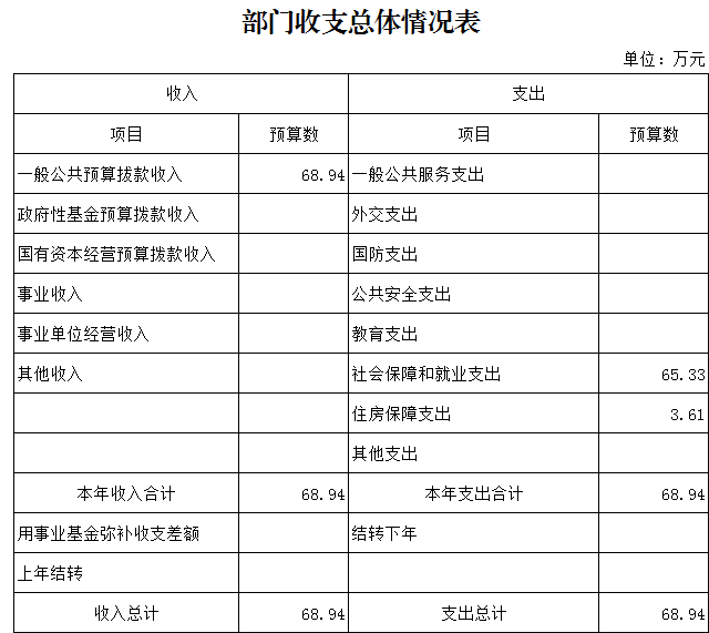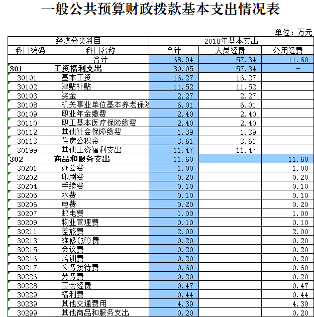 2018年一般公共預(yù)算財(cái)政撥款收入68.94萬(wàn)元,一般公共預(yù)算財(cái)政撥款支出68.94萬(wàn)元,比2017年增加21.54萬(wàn)元。其中:基本支出68.94萬(wàn)元,比2017年增加21.54萬(wàn)元,主要原因是職工工資、津補(bǔ)貼等較2017年調(diào)高,主要用于保障在職人員工資福利及社會(huì)保險(xiǎn)繳費(fèi),保障部門(mén)正常運(yùn)轉(zhuǎn)的各項(xiàng)商品服務(wù)支出。