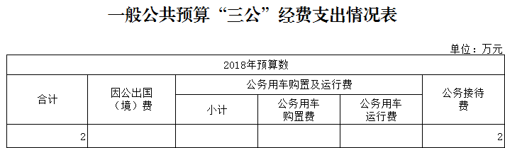 (五)“三公”經(jīng)費(fèi):指用一般公共預(yù)算財(cái)政撥款安排的因公出國(guó)(境)費(fèi)、公務(wù)用車購(gòu)置及運(yùn)行維護(hù)費(fèi)、公務(wù)接待費(fèi)。其中,因公出國(guó)(境)費(fèi)反映單位公務(wù)出國(guó)(境)的國(guó)際旅費(fèi)、國(guó)外城市間交通費(fèi)、住宿費(fèi)、伙食費(fèi)、培訓(xùn)費(fèi)、公雜費(fèi)等支出;公務(wù)用車購(gòu)置費(fèi)反映單位公務(wù)用車購(gòu)置支出(含車輛購(gòu)置稅);公務(wù)用車運(yùn)行維護(hù)費(fèi)反映單位按規(guī)定保留的公務(wù)用車燃料費(fèi)、維修費(fèi)、過(guò)路過(guò)橋費(fèi)、保險(xiǎn)費(fèi)、安全獎(jiǎng)勵(lì)費(fèi)用等支出;公務(wù)接待費(fèi)反映單位按規(guī)定開(kāi)支的各類公務(wù)接待(含外賓接待)支出。