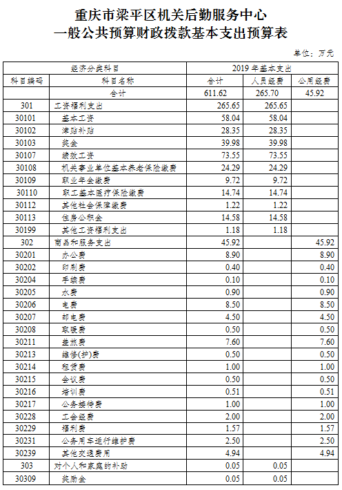 | 標題 | 重慶市梁平區機關后勤服務中心2019年部門預算情況說明 | ||