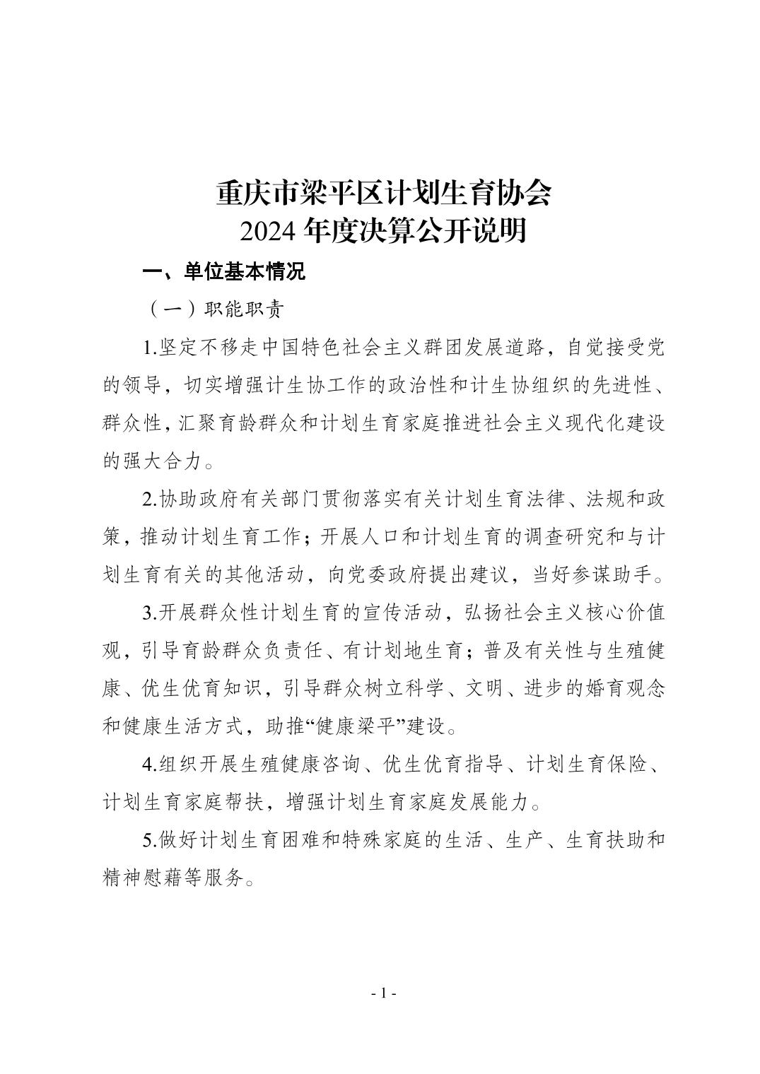 | 標題 | 重慶市梁平區計劃生育協會2024年度決算公開說明 |