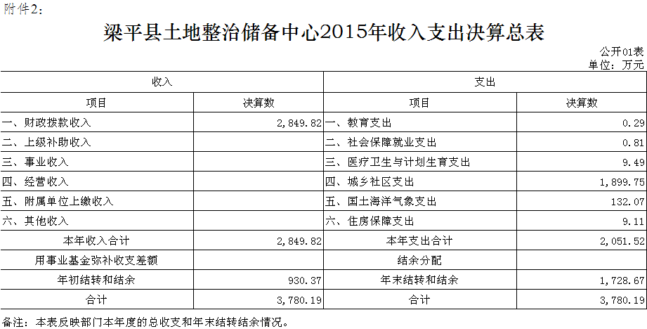 | 標題 | 梁平縣土地整治儲備中心2015年部門決算情況說明 |