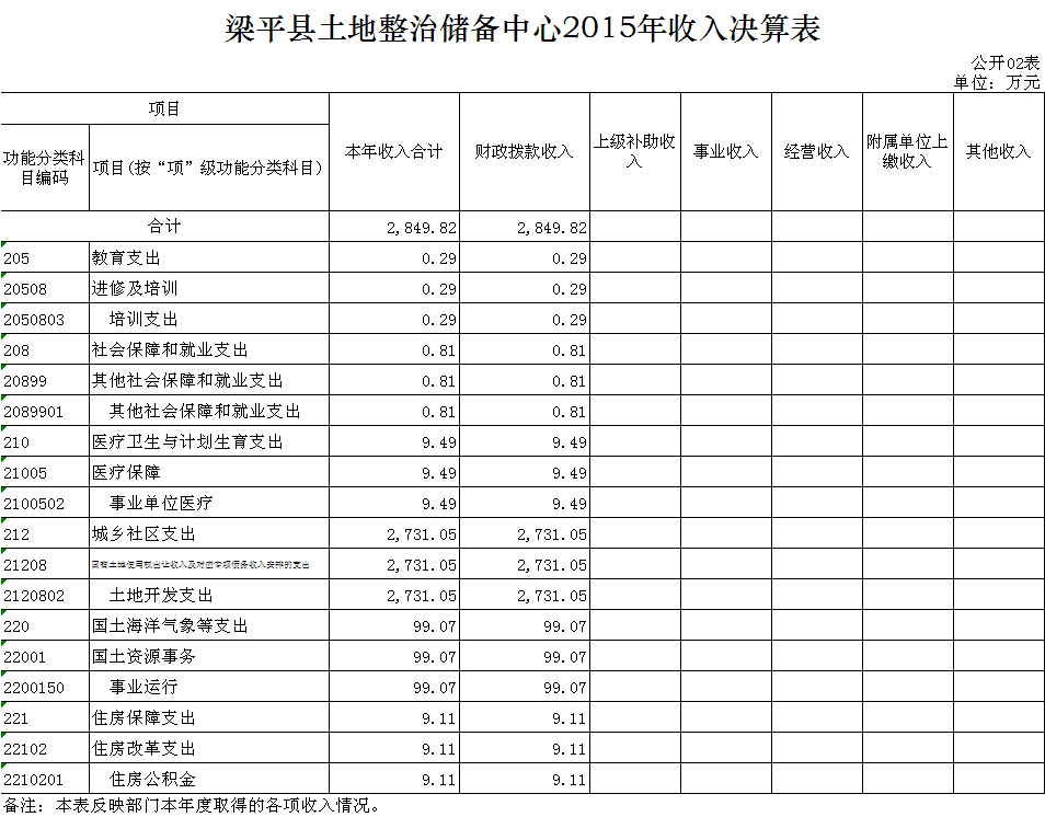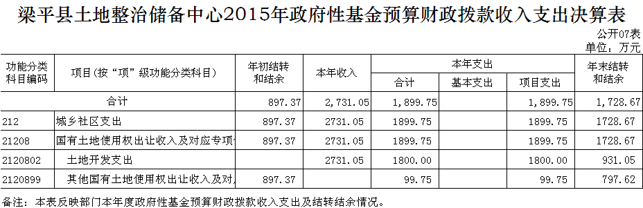 | 標題 | 梁平縣土地整治儲備中心2015年部門決算情況說明 | ||