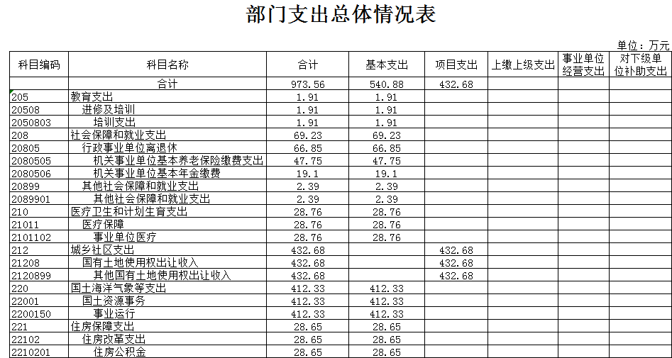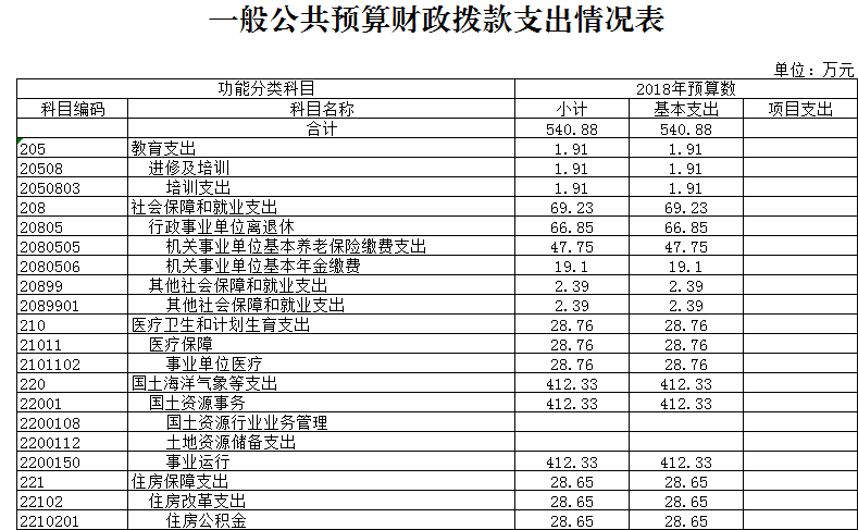 2018年一般公共預算財政撥款收入540.88萬元,一般公共預算財政撥款支出540.88萬元,比2017年增加367.15萬元。其中:基本支出 540.88萬元,按功能分類:事業運行412.33萬元,培訓支出1.91萬元,其他社會保障和就業支出69.23萬元,事業單位醫療28.76萬元,住房公積金支出28.65萬元;按經濟分類:工資福利支出445.74萬元,商品和服務支出66.49萬元,對個人和家庭補助支出28.65萬元。主要原因是機構合并;主要用于保障在職人員工資福利及社會保障繳費,保障部門正常運轉的各項商品服務支出。總預算收支與2017年相比,主要變化是2018年機構合并,人員增多,各項開支增多。
