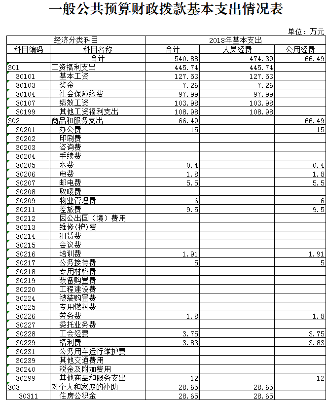 1、部門運行經費(即公用經費)。2018年一般公共預算財政撥款運行經費66.49萬元,主要用于:辦公費及水電費、郵電費、差旅費、培訓費、工會經費、福利費、其他商品和服務支出。