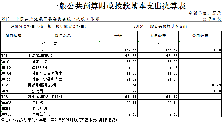 | 標題 | 中國共產黨梁平縣委員會統一戰線工作部2016年部門決算情況說明 |
