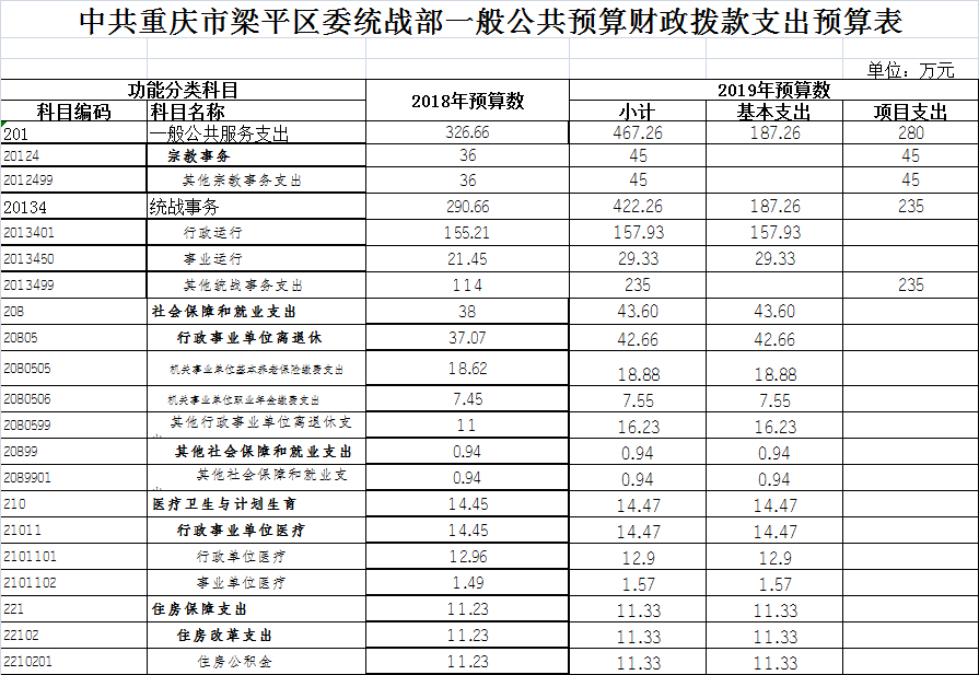 | 標(biāo)題 | 中共重慶市梁平區(qū)委員會統(tǒng)一戰(zhàn)線工作部2019年部門預(yù)算情況說明 | ||