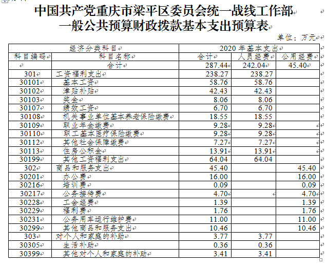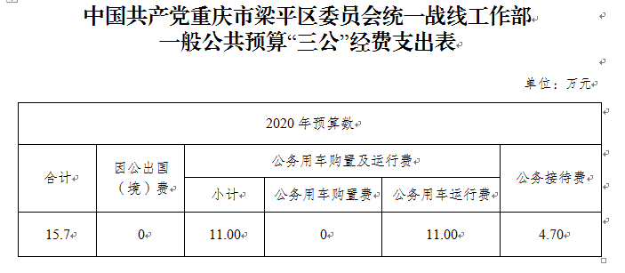 | 標(biāo)題 | 中國(guó)共產(chǎn)黨重慶市梁平區(qū)委員會(huì)統(tǒng)戰(zhàn)部2020年部門預(yù)算情況說(shuō)明 |