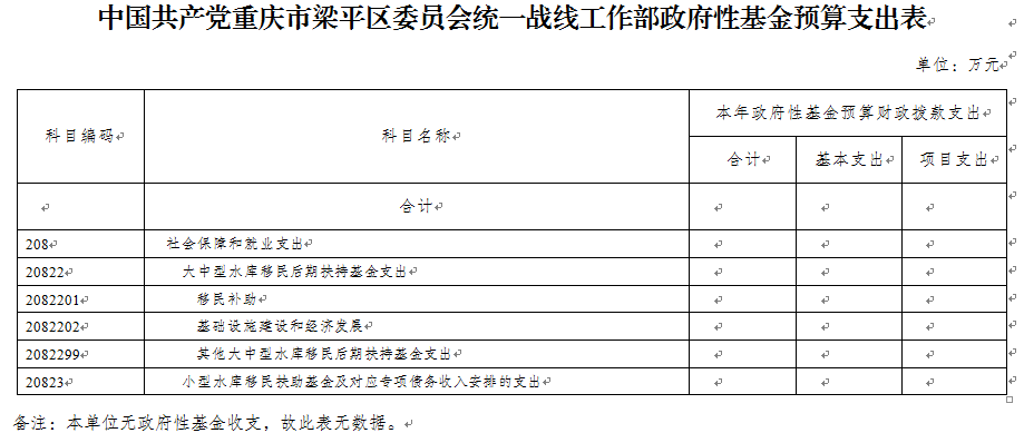 中國(guó)共產(chǎn)黨重慶市梁平區(qū)委員會(huì)統(tǒng)戰(zhàn)部2020年未使用政府性基金預(yù)算撥款安排的支出。