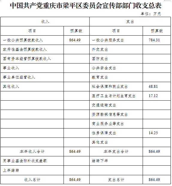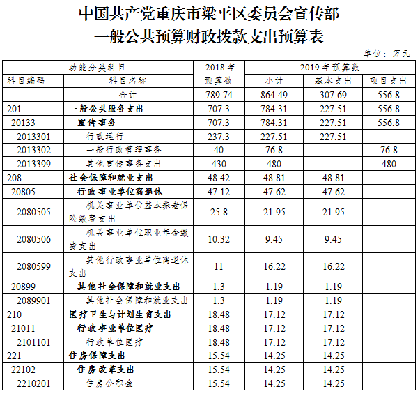 | 標題 | 中國共產黨重慶市梁平區委員會宣傳部2019年部門預算情況說明 |