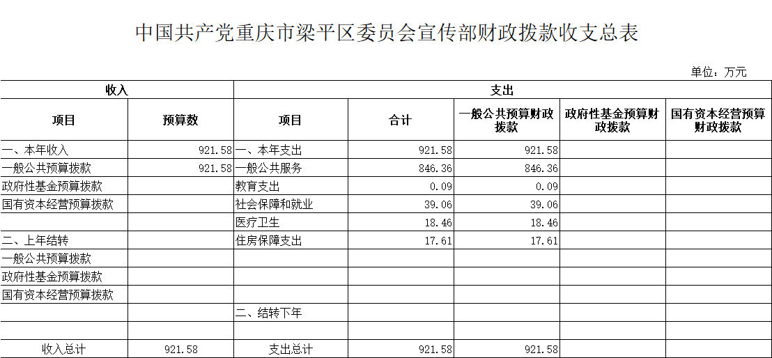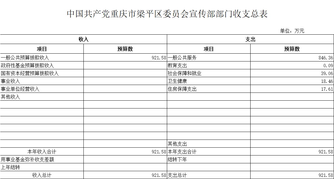 | 標題 | 中國共產黨重慶市梁平區委員會宣傳部2020年部門預算情況說明 |