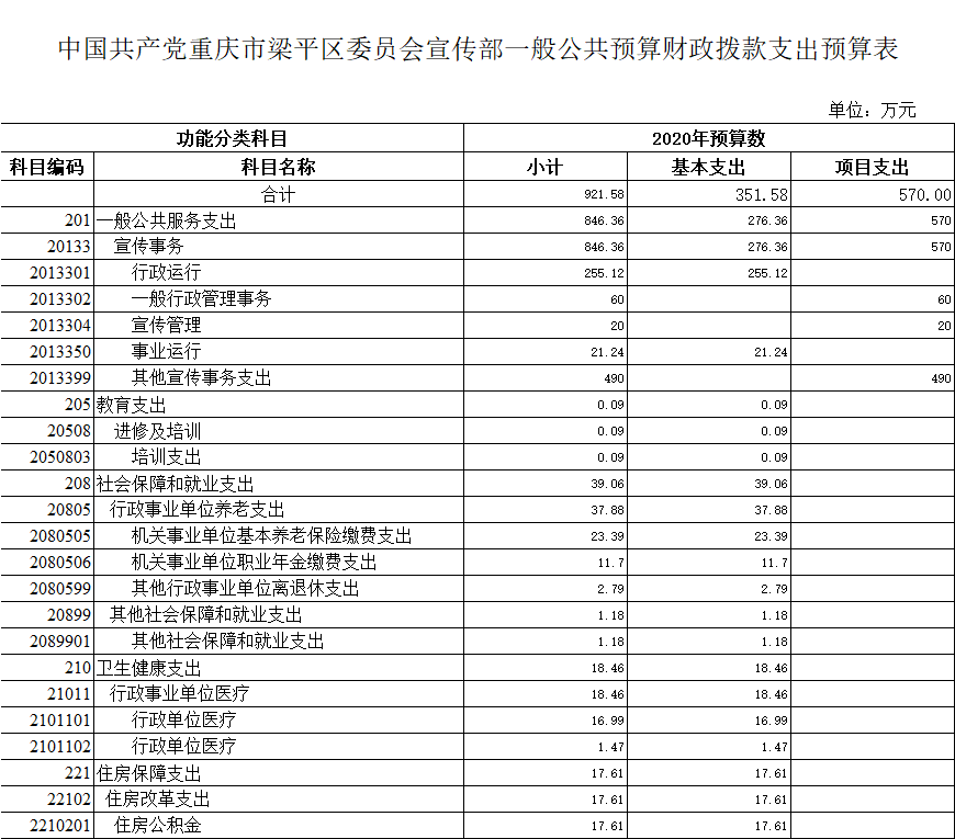 | 標題 | 中國共產黨重慶市梁平區委員會宣傳部2020年部門預算情況說明 | ||