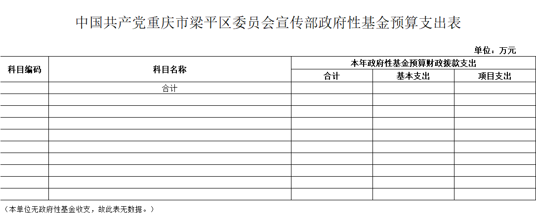 中國共產黨重慶市梁平區委員會宣傳部2020年未使用政府性基金預算撥款安排的支出