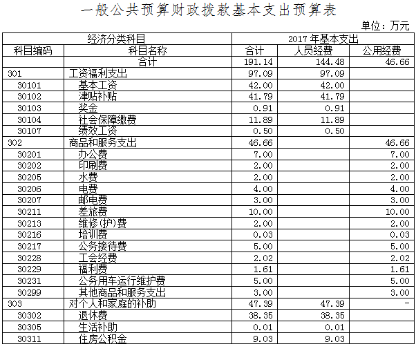 1、部門運行經(jīng)費(即公用經(jīng)費)。2017年一般公共預算財政撥款運行經(jīng)費46.66萬元,主要用于:辦公費及印刷費、郵電費、其他商品和服務支出。