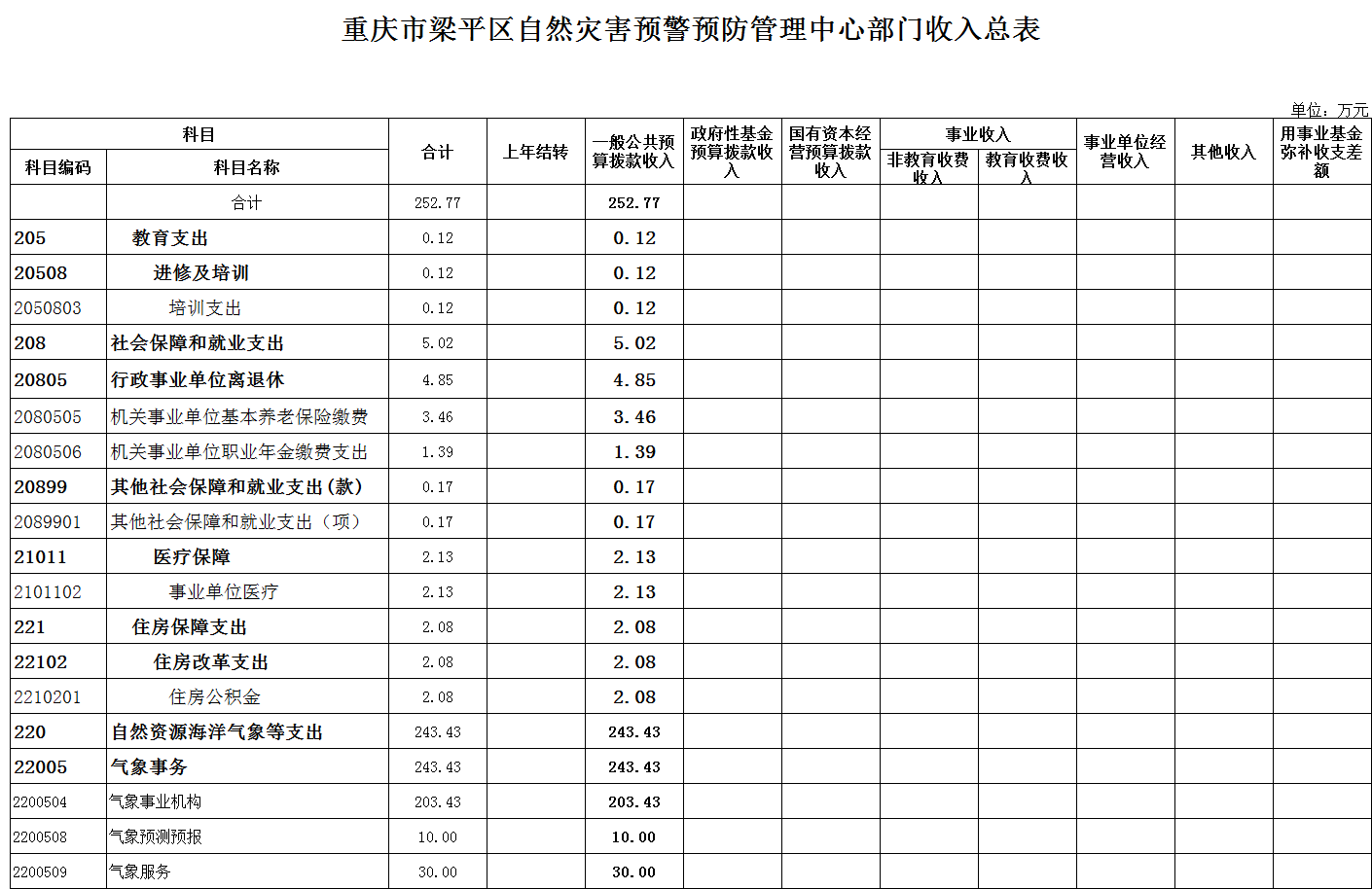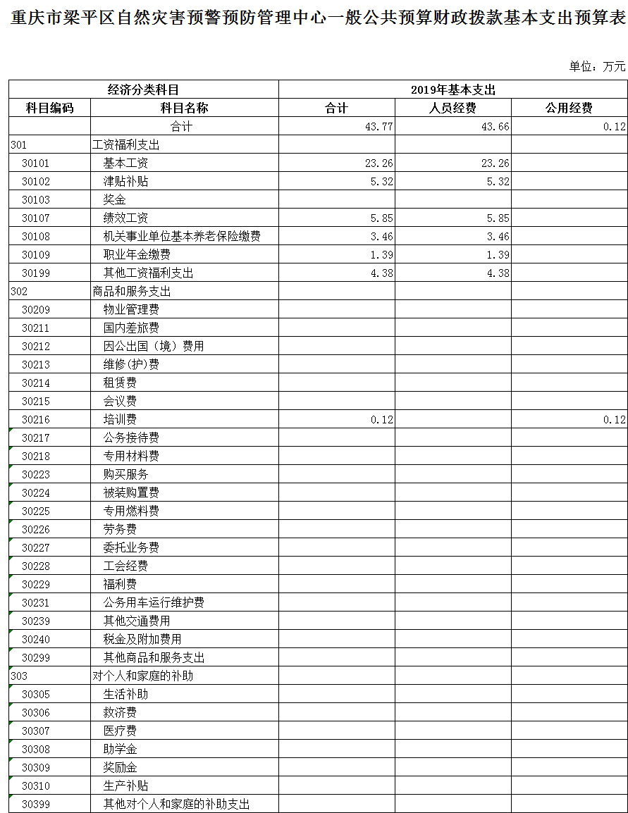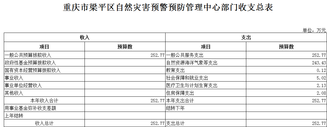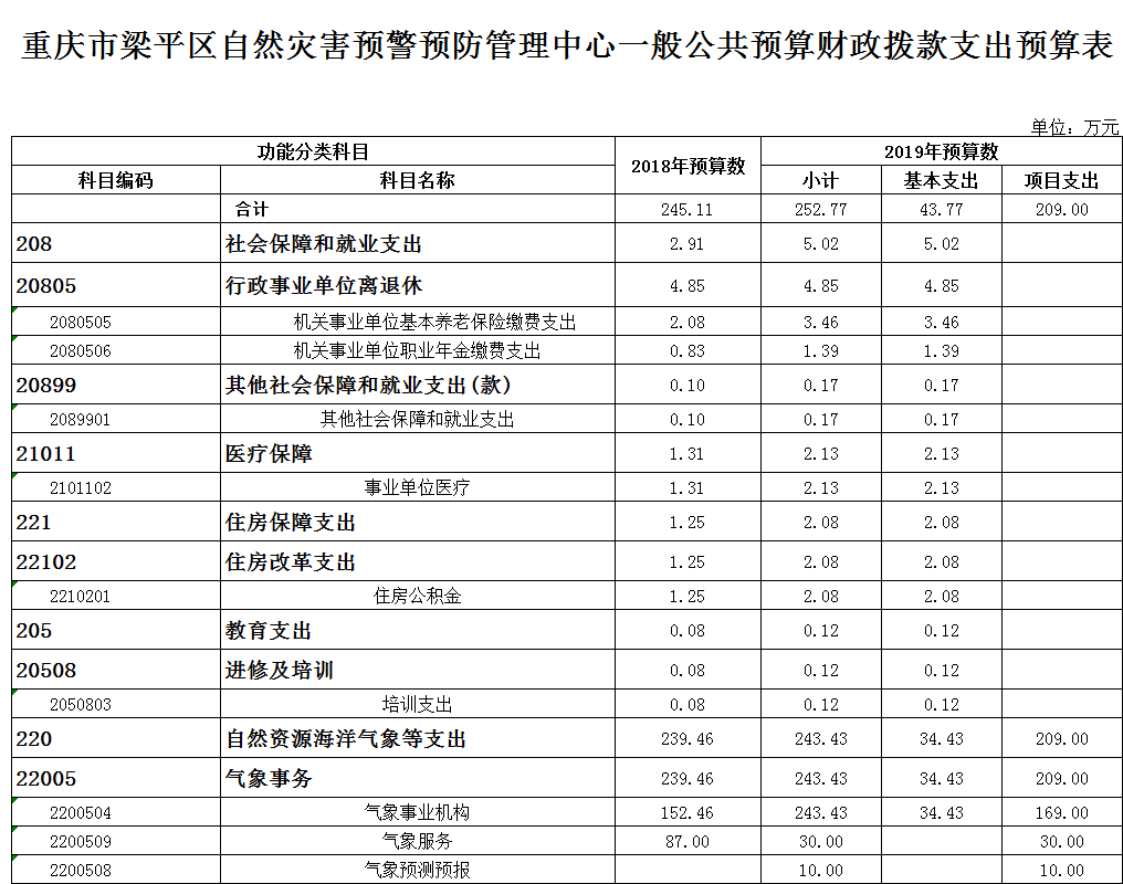 | 標題 | 重慶市梁平區自然災害預警預防管理中心2019年部門預算情況說明 | ||