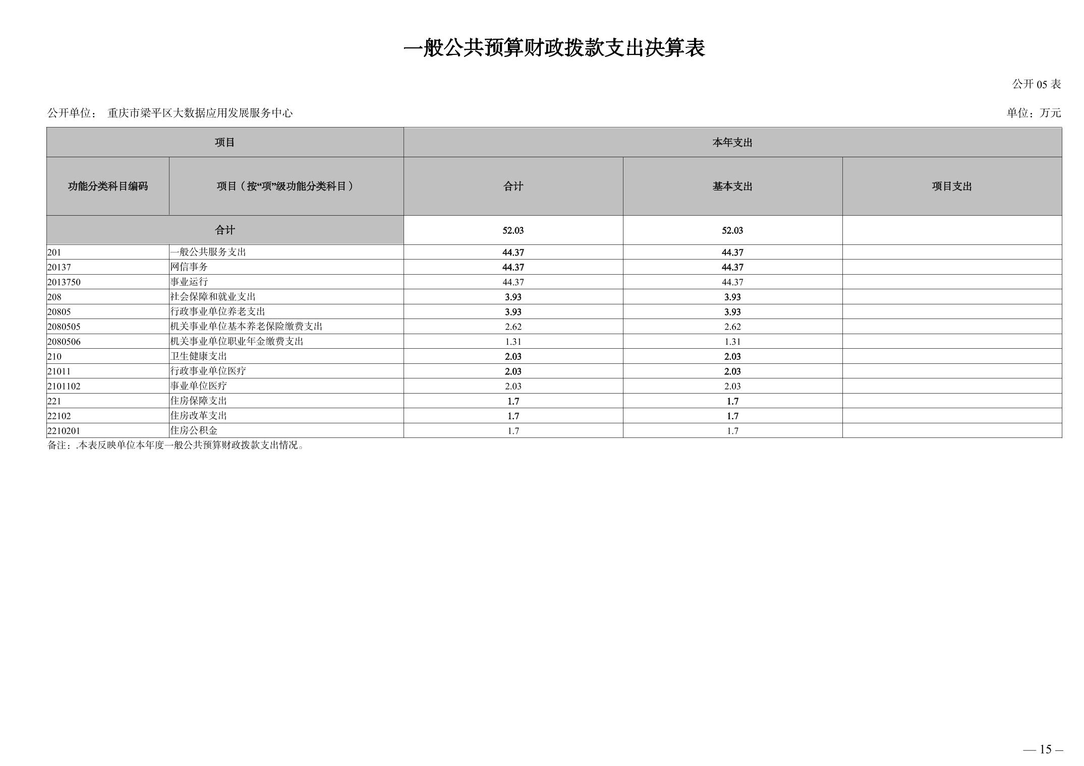 | 標題 | 重慶市梁平區大數據應用發展服務中心 2023年度決算公開說明 |