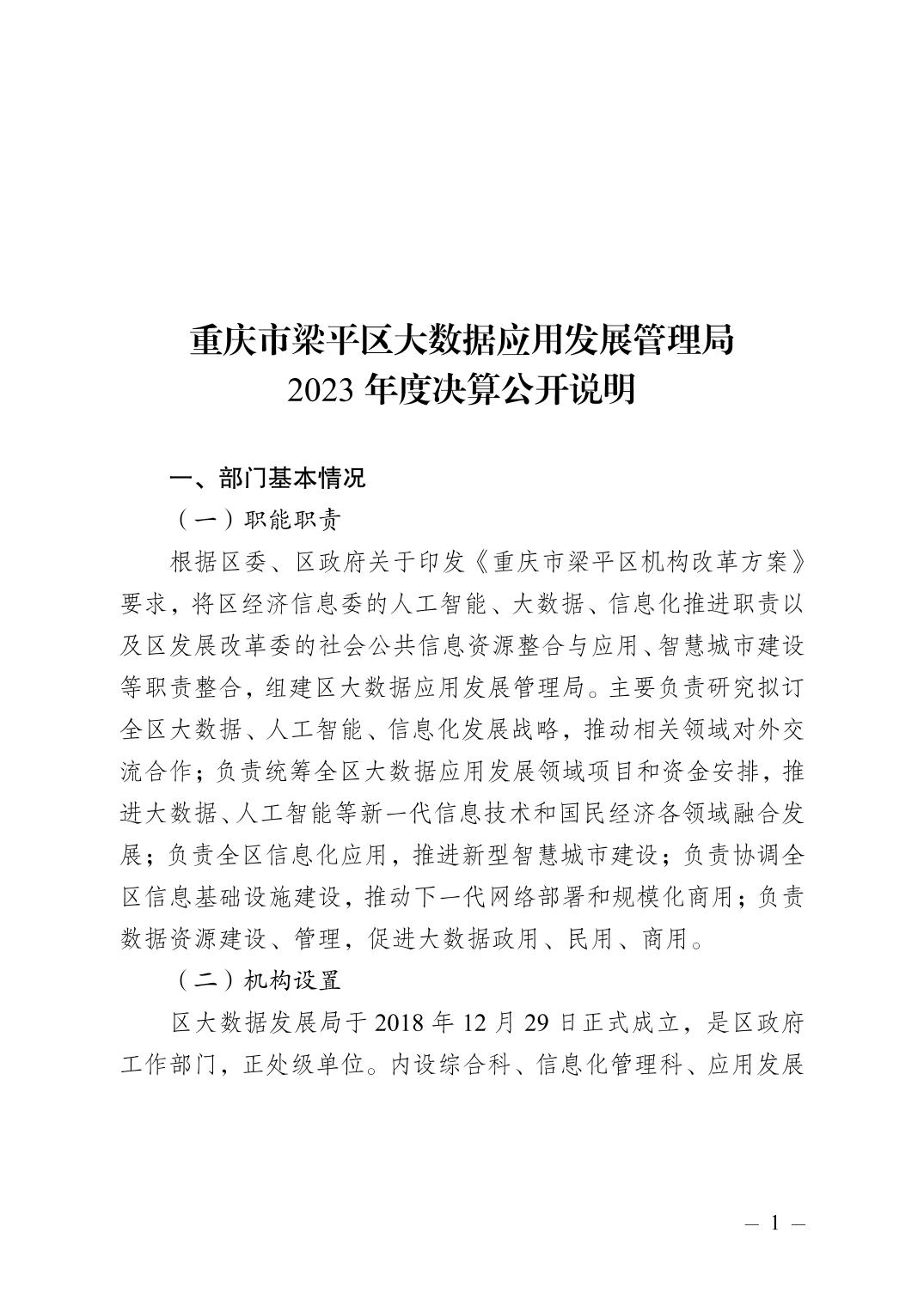 | 標題 | 重慶市梁平區大數據應用發展管理局 2023年度決算公開說明 |