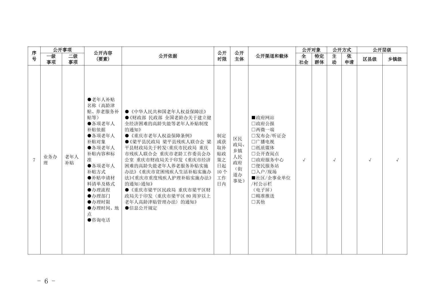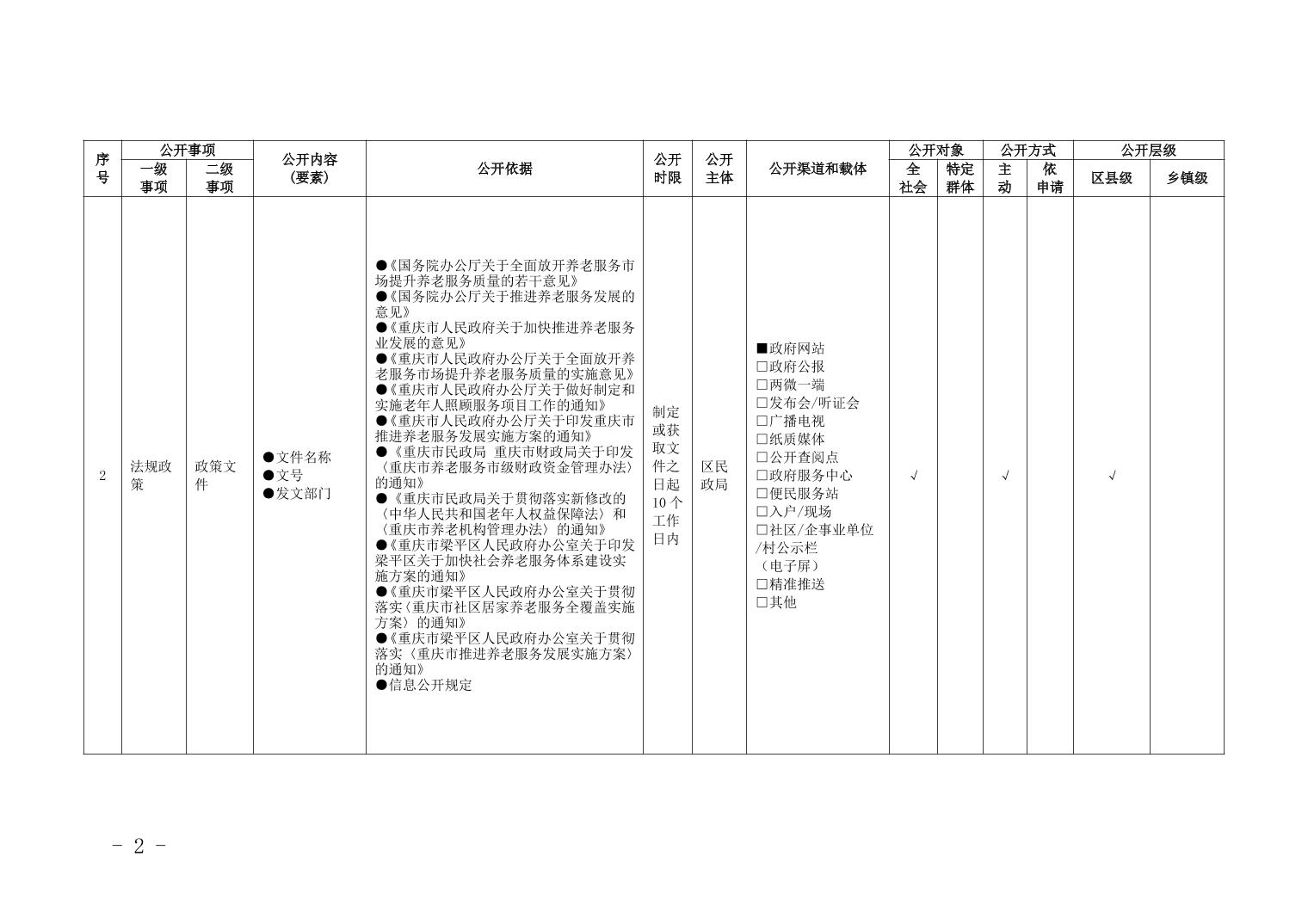 重慶市梁平區(qū)養(yǎng)老服務(wù)領(lǐng)域基層政務(wù)公開標(biāo)準(zhǔn)目錄(2025年)