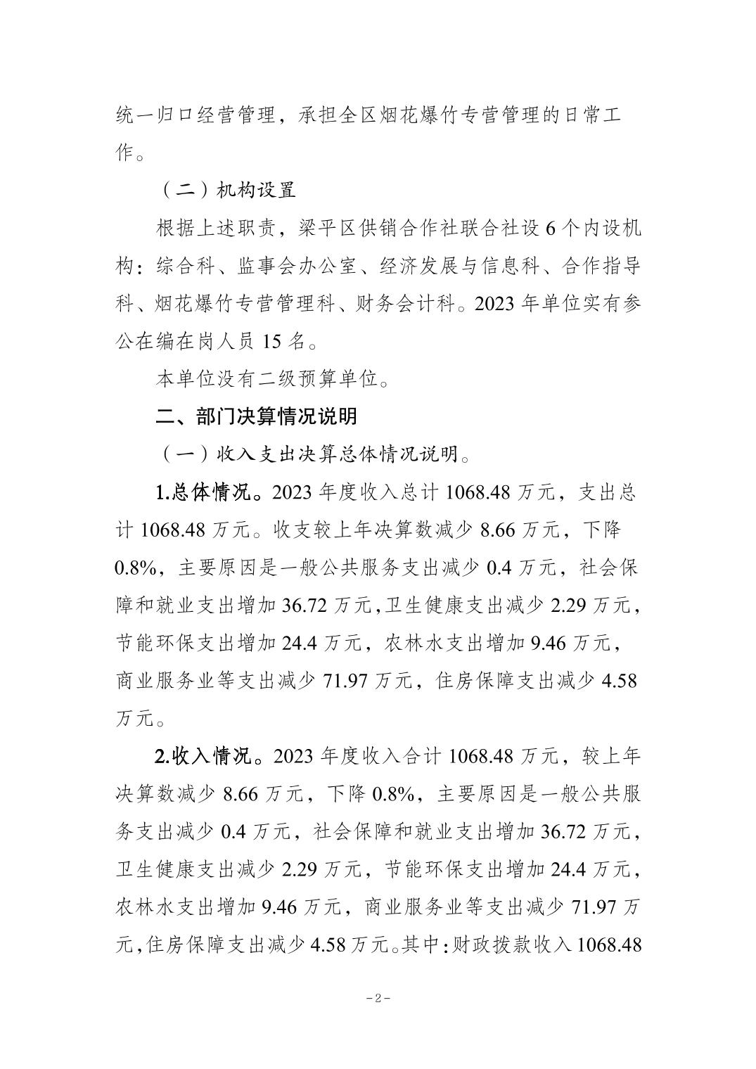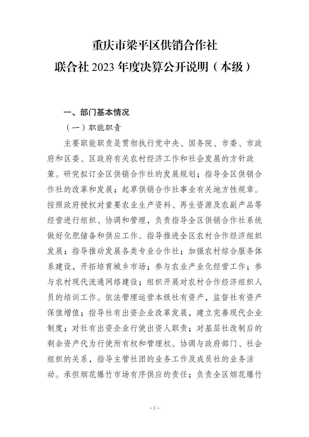 | 標題 | 重慶市梁平區供銷合作社聯合社2023年度決算公開說明(本級) |