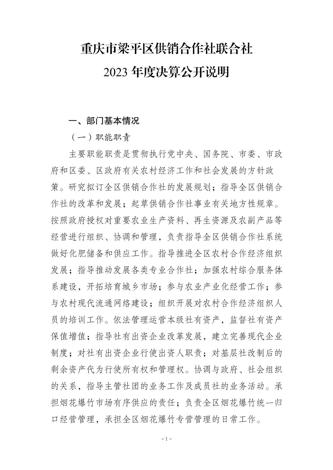 | 標(biāo)題 | 重慶市梁平區(qū)供銷合作社聯(lián)合社2023年度決算公開說明 |