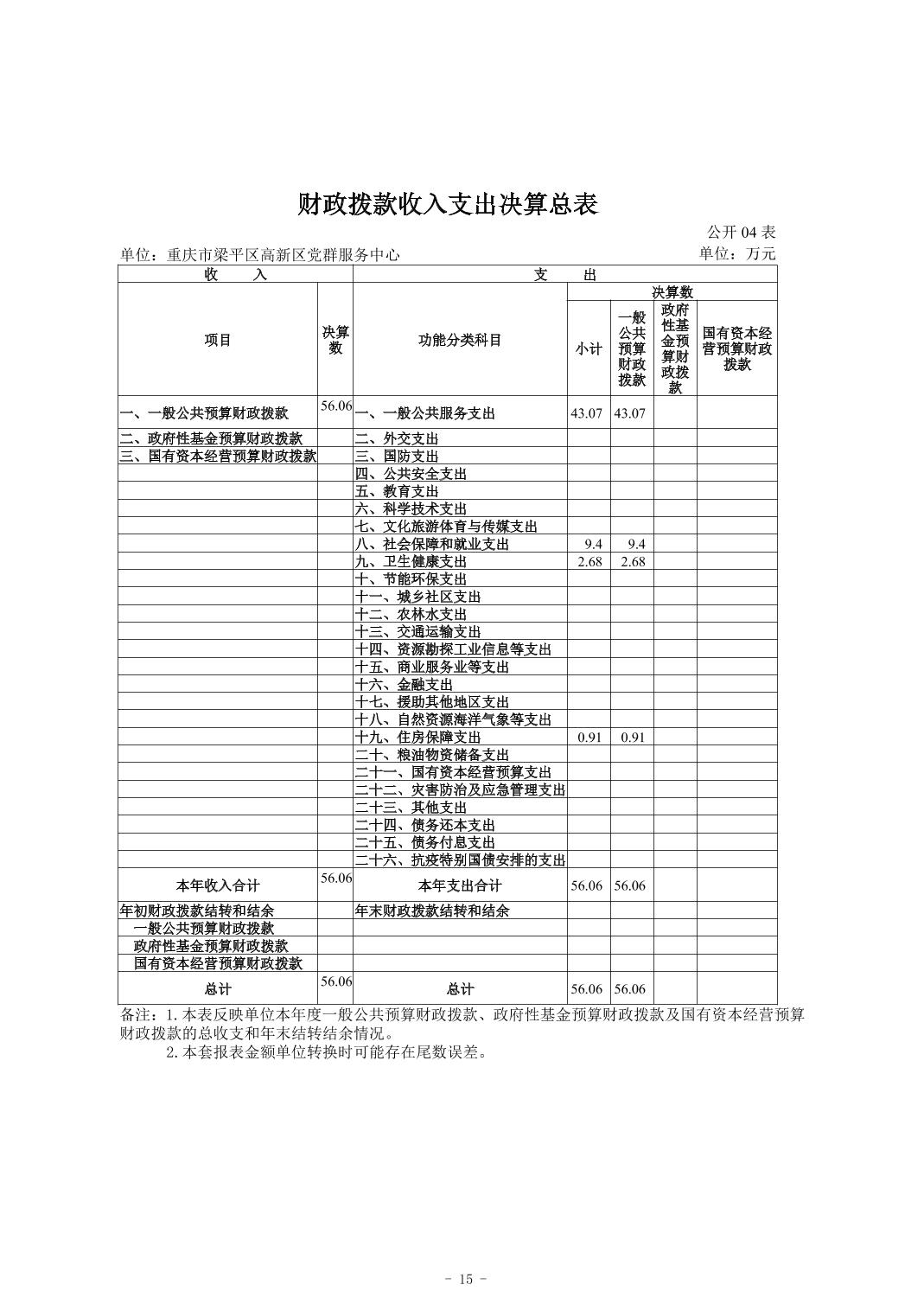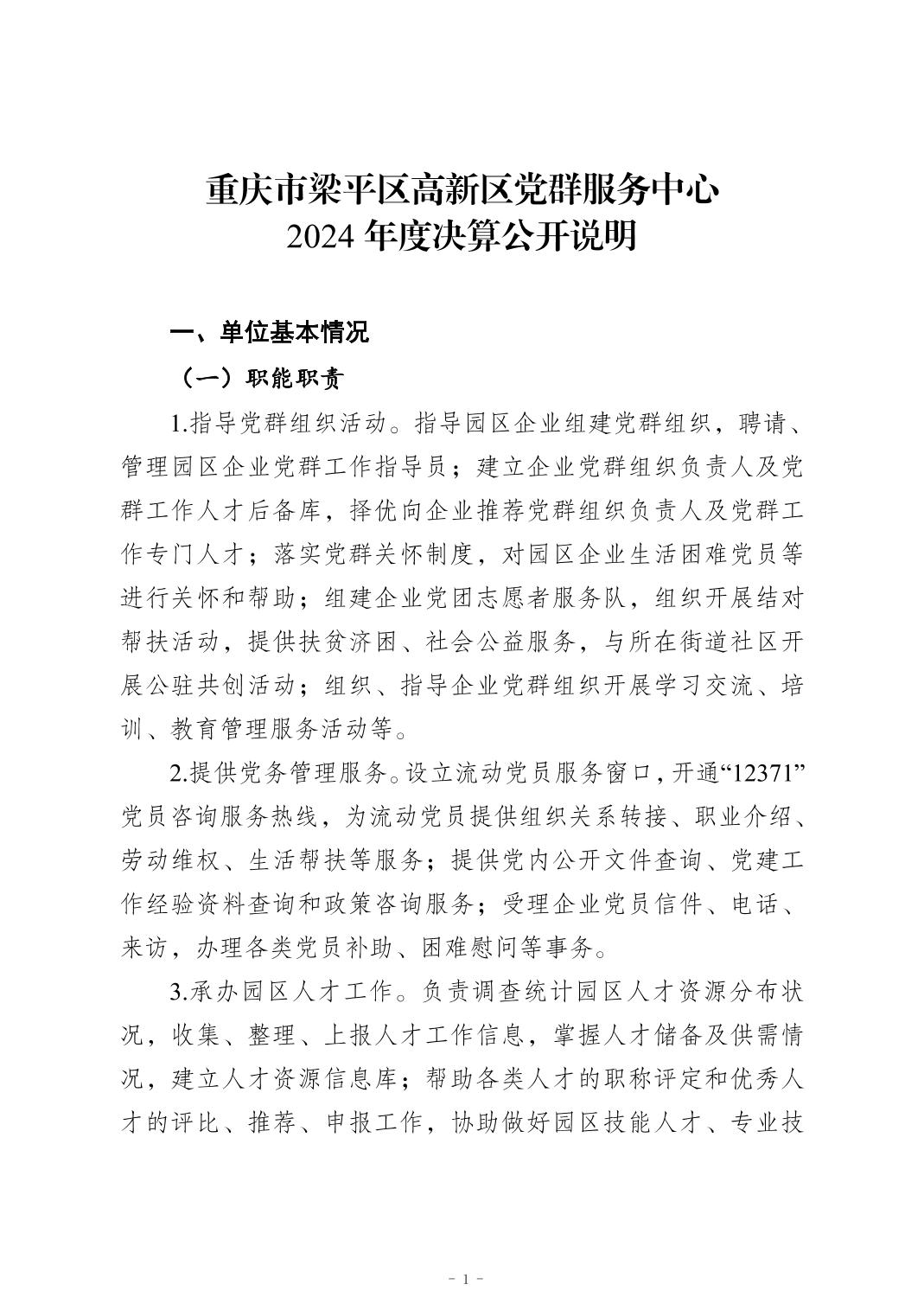 | 標題 | 重慶市梁平區高新區黨群服務中心 2024年度決算公開說明 |