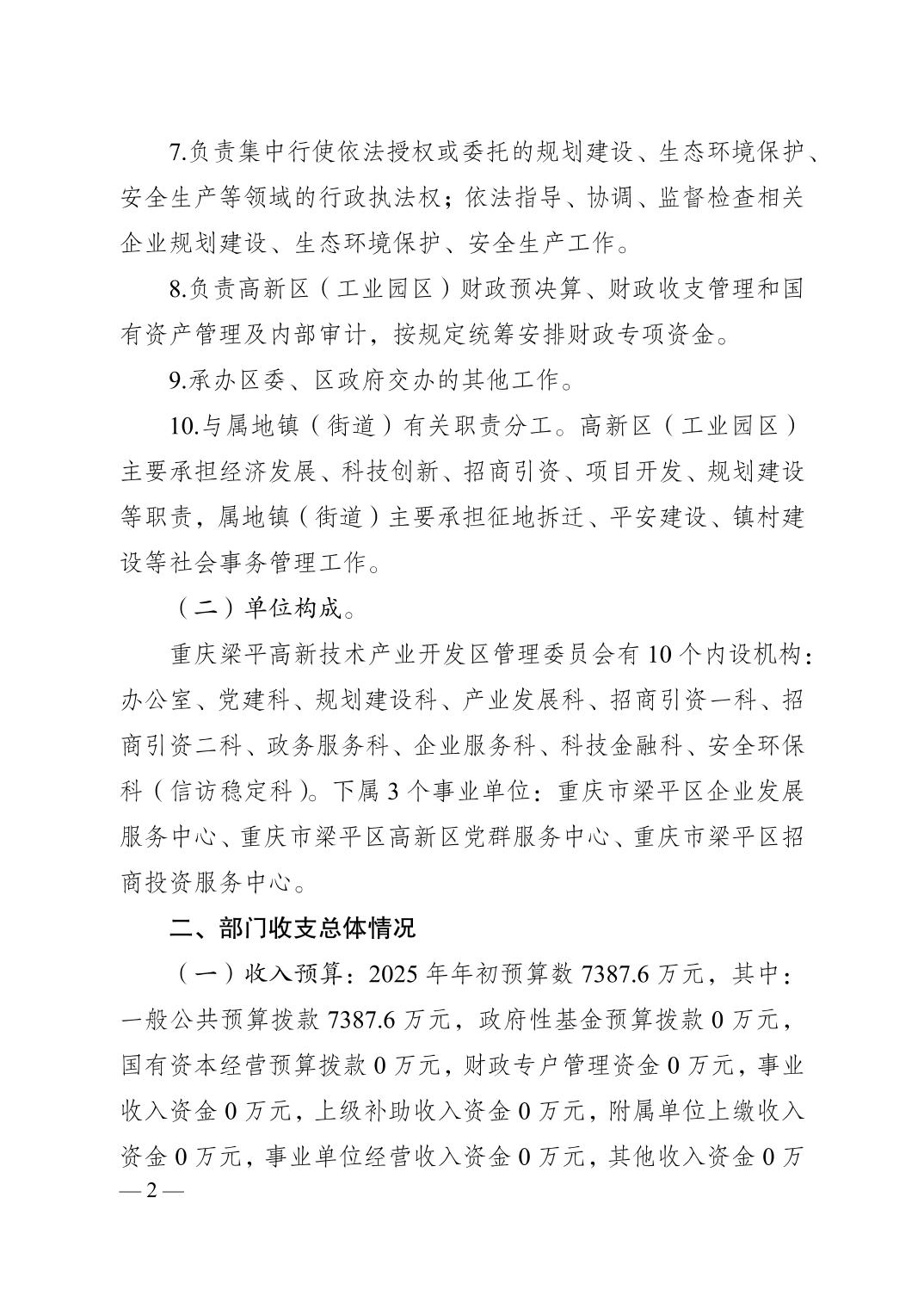 | 標題 | 重慶梁平高新技術產業開發區管理委員會 2025年部門預算情況說明 |