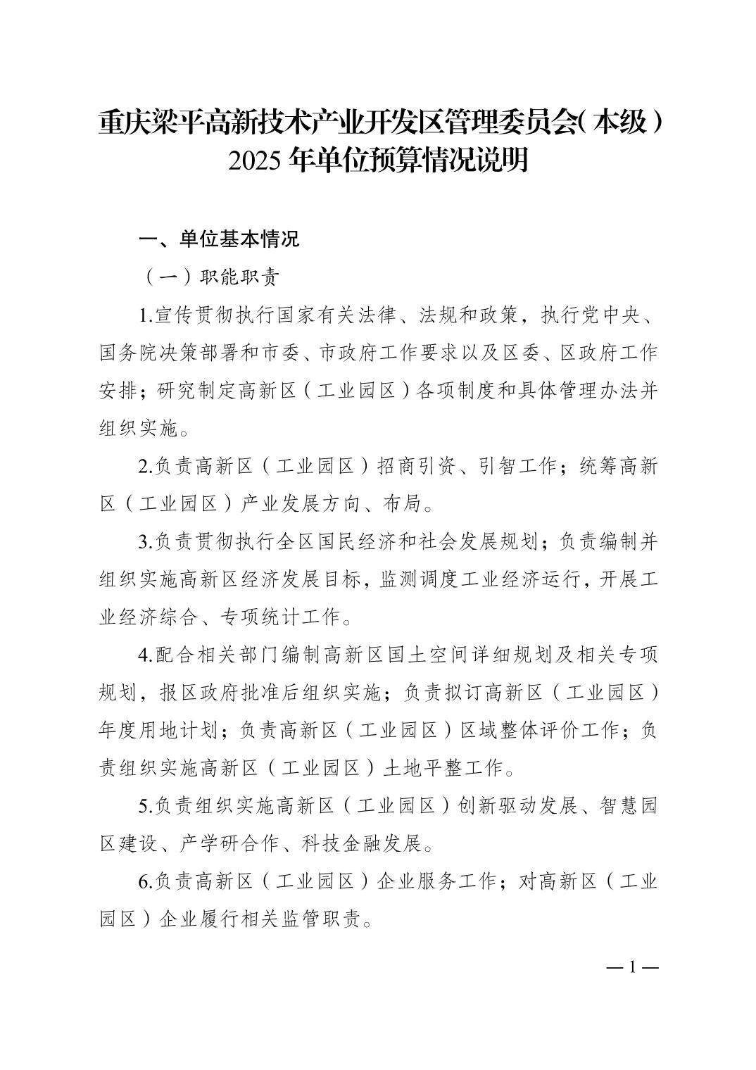 | 標題 | 重慶梁平高新技術產業開發區管理委員會(本級) 2025年單位預算情況說明 |