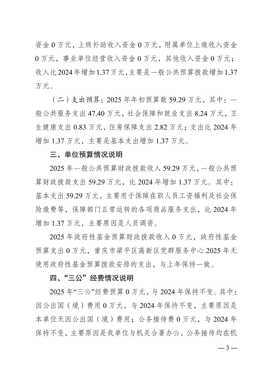 | 標題 | 重慶市梁平區高新區黨群服務中心 2025年單位預算情況說明 |