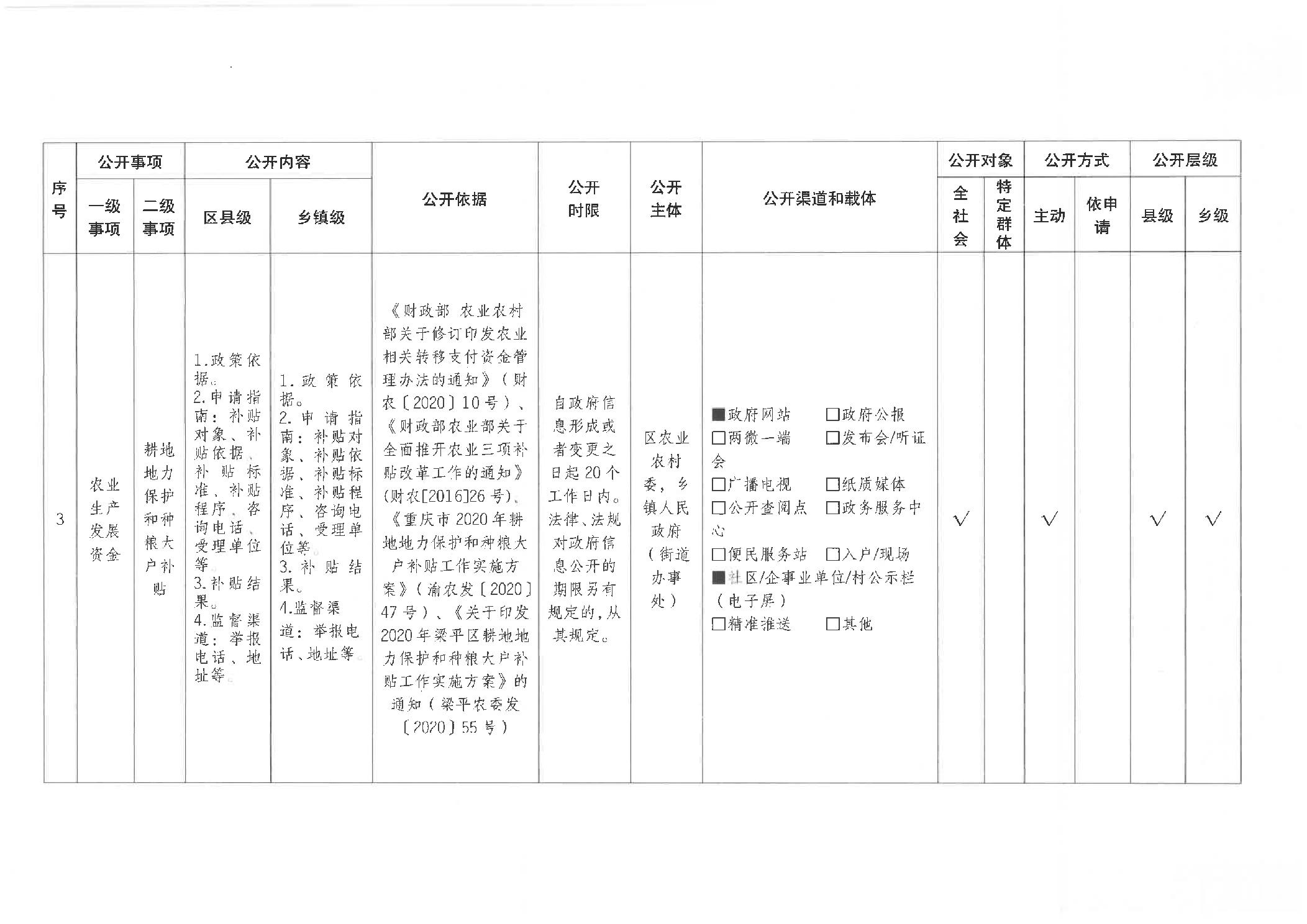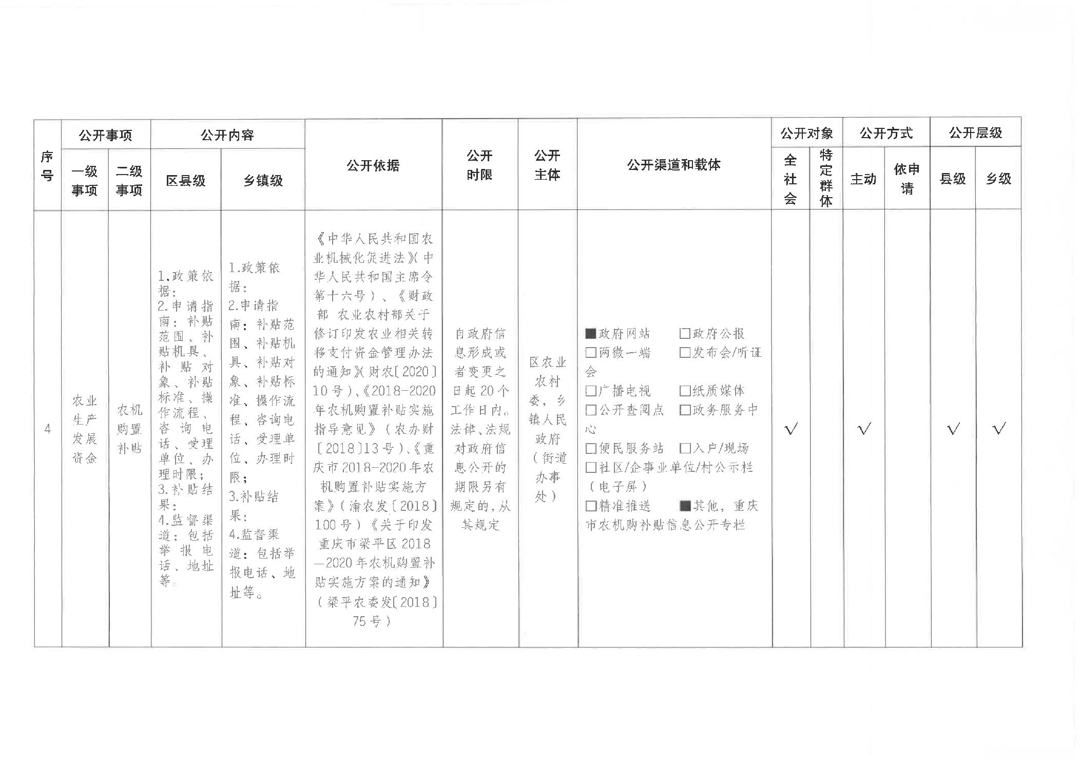 | 標題 | 重慶市梁平區回龍鎮涉農補貼領域基層政務公開標準目錄 | ||