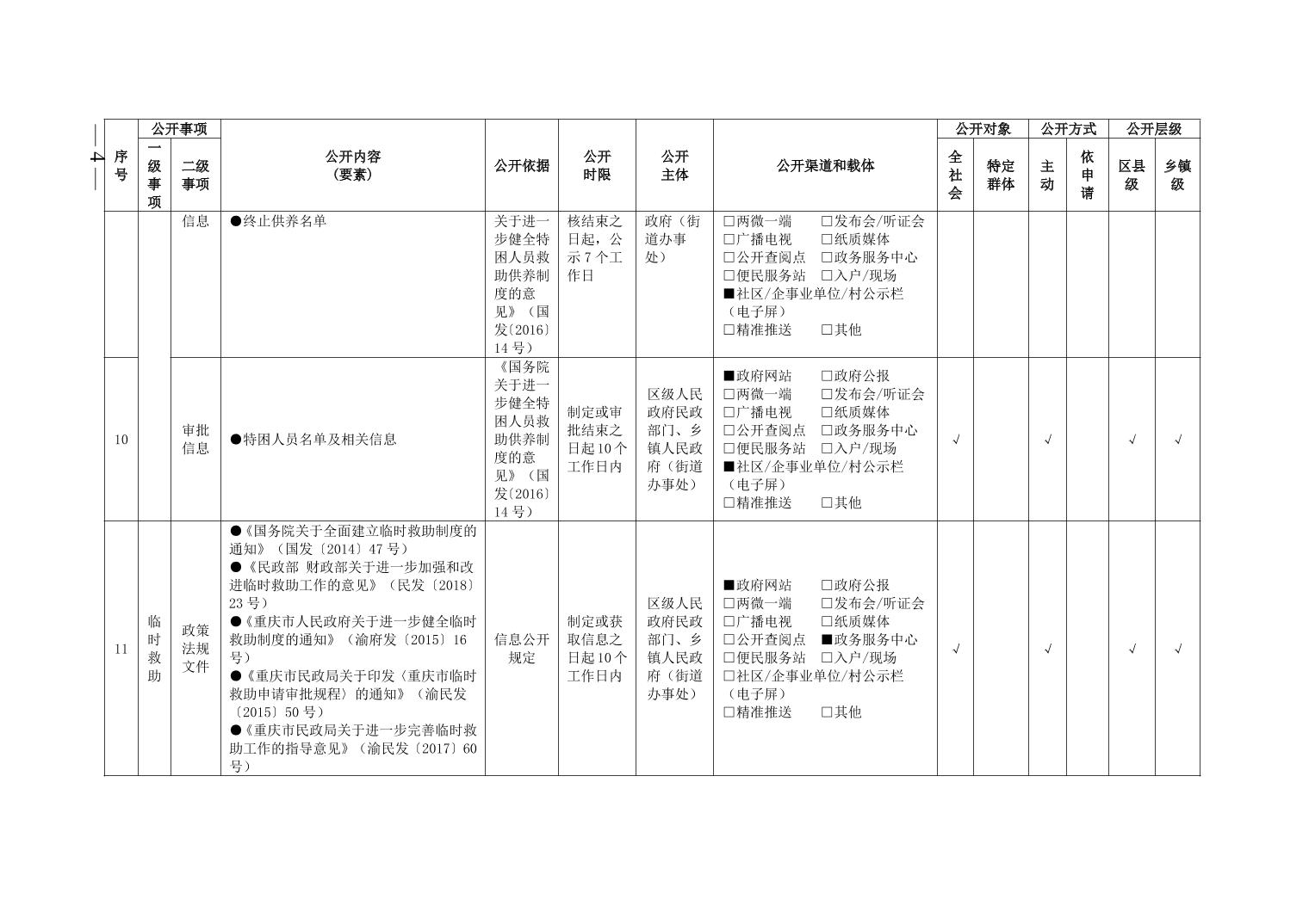 重慶市梁平區社會救助領域基層政務公開標準目錄(2025年)
