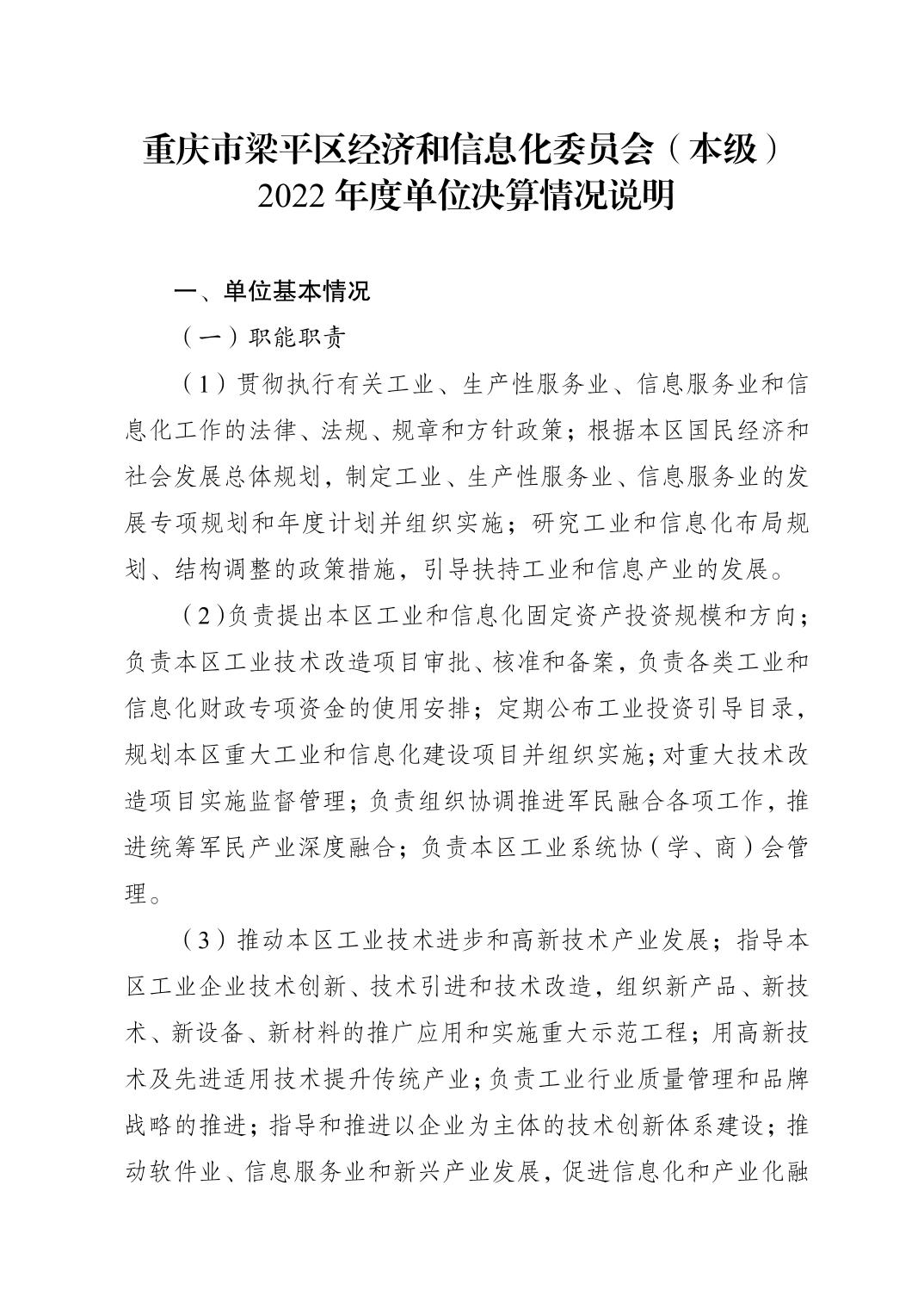 | 標題 | 重慶市梁平區經濟和信息化委員會(本級) 2022年度單位決算情況說明 |