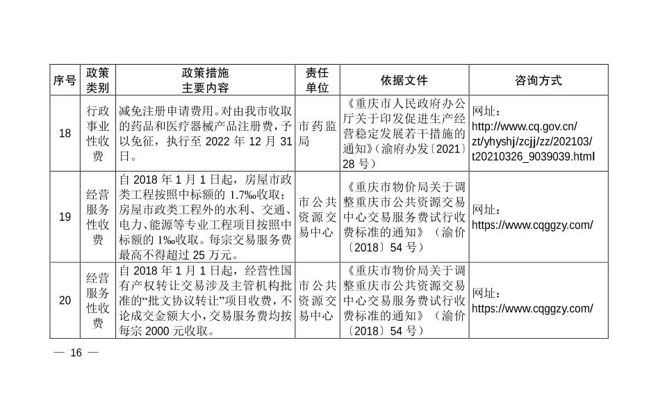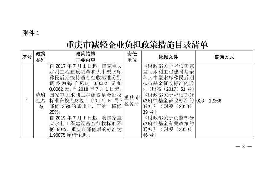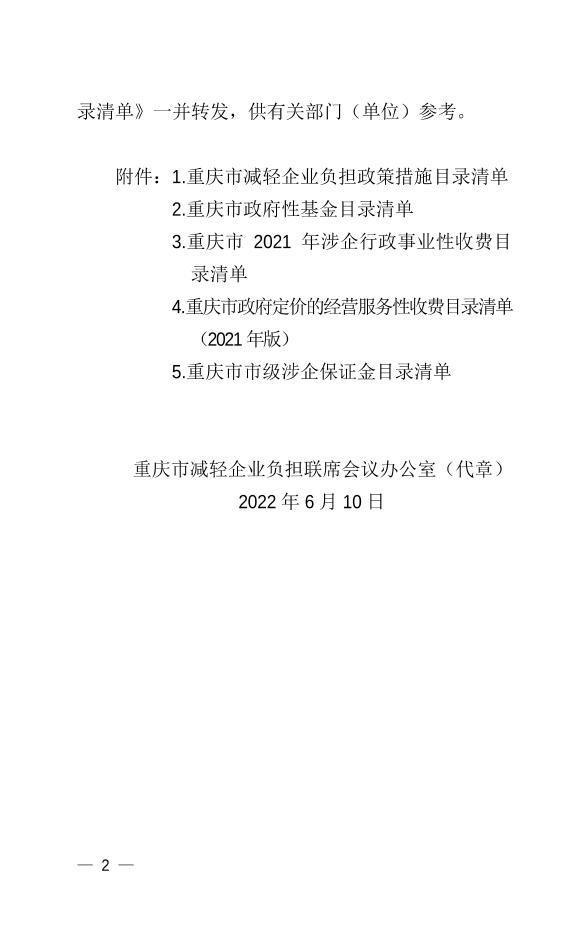 | 標題 | 重慶市減輕企業負擔聯席會議辦公室關于發布第十批重慶市減輕企業負擔政策措施目錄清單的通知 |