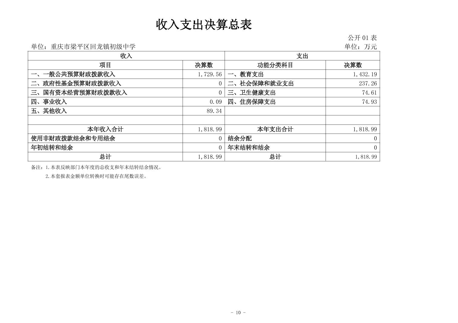 | 標題 | 重慶市梁平區(qū)回龍鎮(zhèn)初級中學2024年度決算公開說明 |