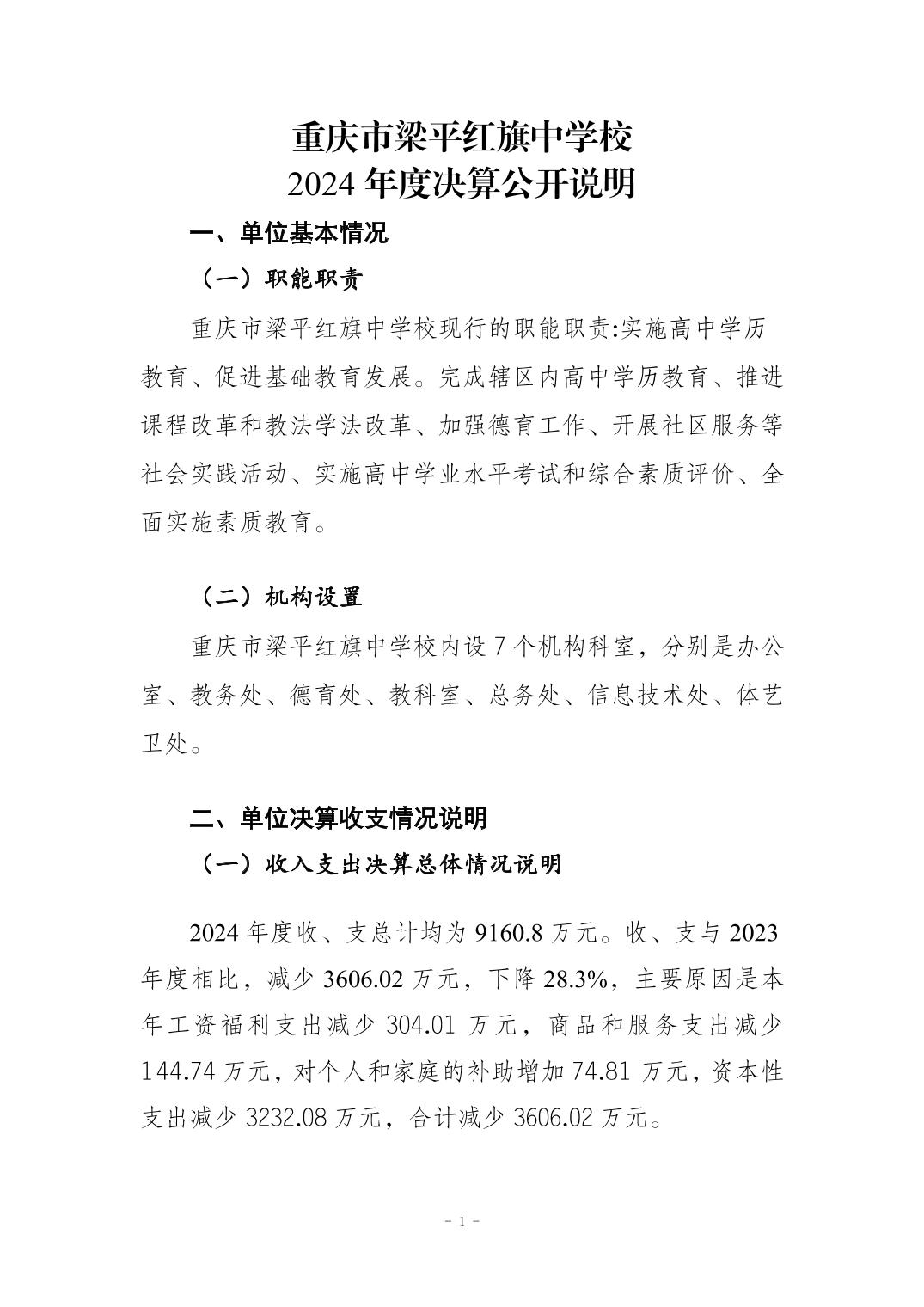 | 標(biāo)題 | 重慶市梁平紅旗中學(xué)校2024年度決算公開說明 |