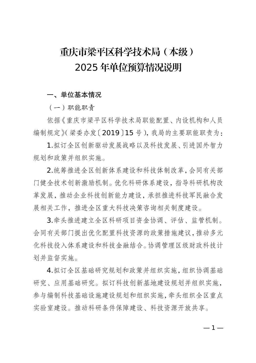 | 標題 | 重慶市梁平區(qū)科學技術局(本級)2025年單位預算情況說明 | ||
