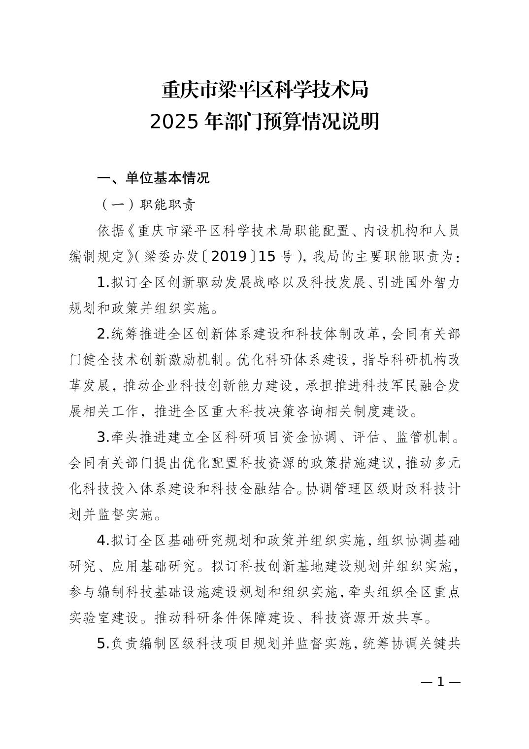 | 標題 | 重慶市梁平區科學技術局 2025年部門預算情況說明 |