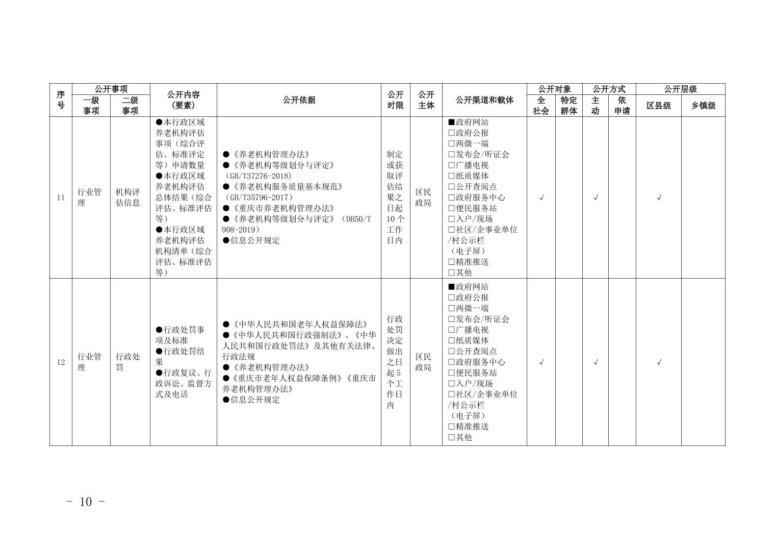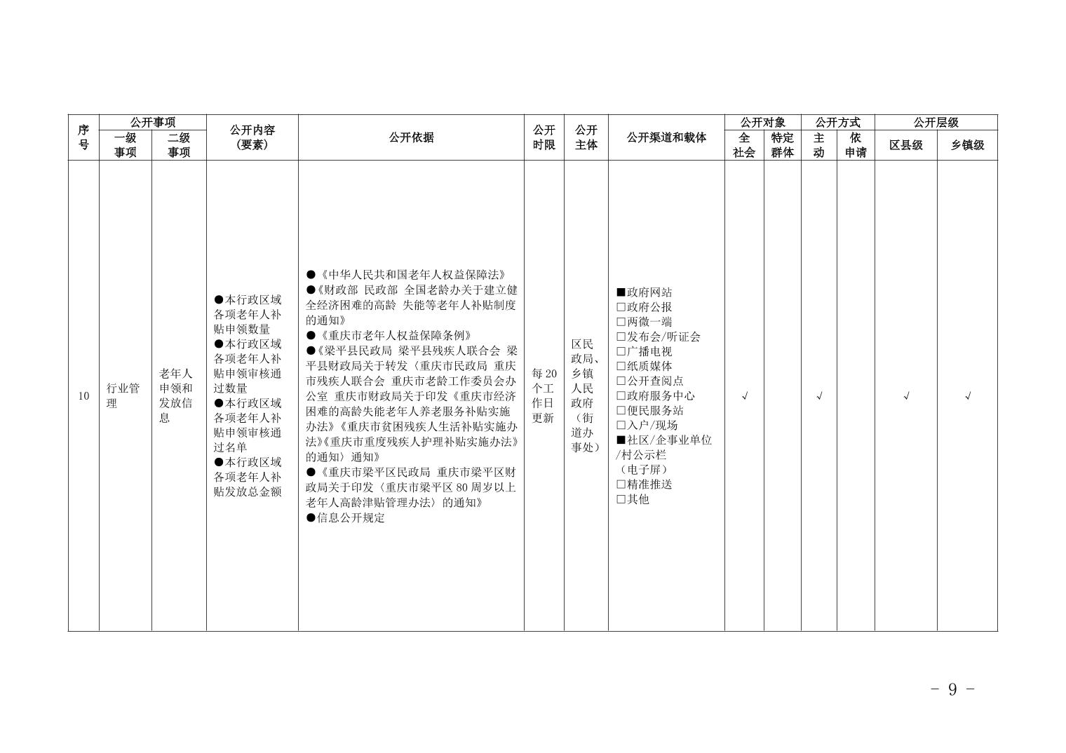 重慶市梁平區養老服務領域基層政務公開標準目錄(2025年)