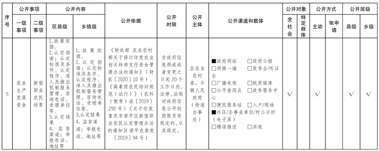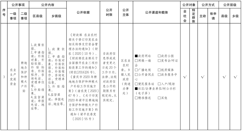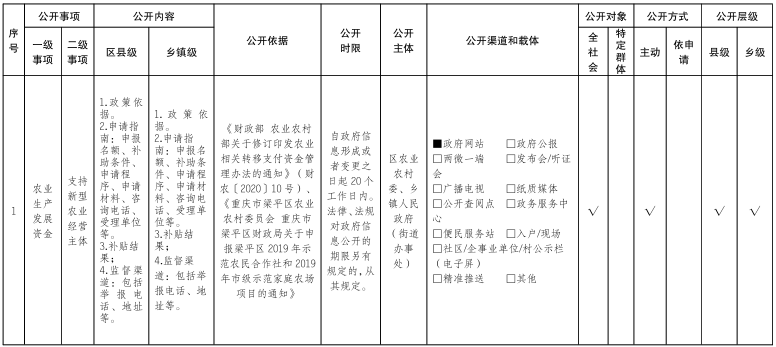 重慶市梁平區(qū)鄉(xiāng)鎮(zhèn)(街道)涉農(nóng)補貼領(lǐng)域基層政務(wù)公開標準目錄