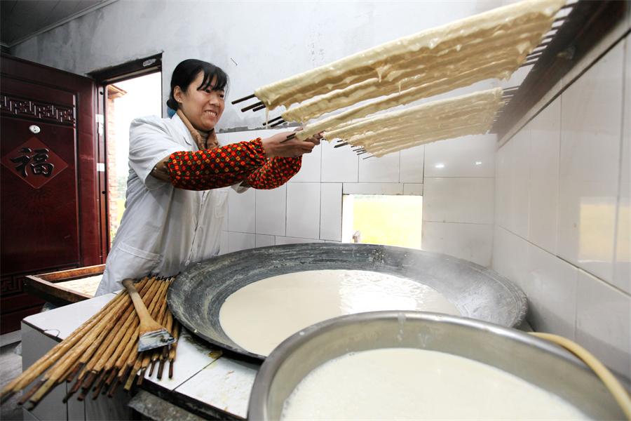 禮讓鎮農民用優質黃豆作原料加工豆筋有上百年的歷史,在市級龍頭企業梁平天友豆制品有限公司的帶動下,當地農民加工豆筋的規模逐步擴大,并輻射帶動明達、龍門、新盛、安勝等鎮鄉農民搞豆筋加工。為進一步做大豆筋產業,提高產品質量,開拓營銷市場,禮讓、仁賢、明達等地的豆筋營銷股東民主協商,自愿組建豆筋產業集團,帶領農民聯合創市場,實現股東和加工戶的雙贏。
