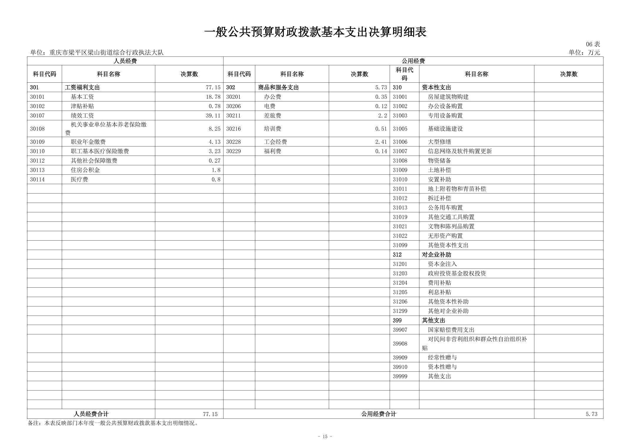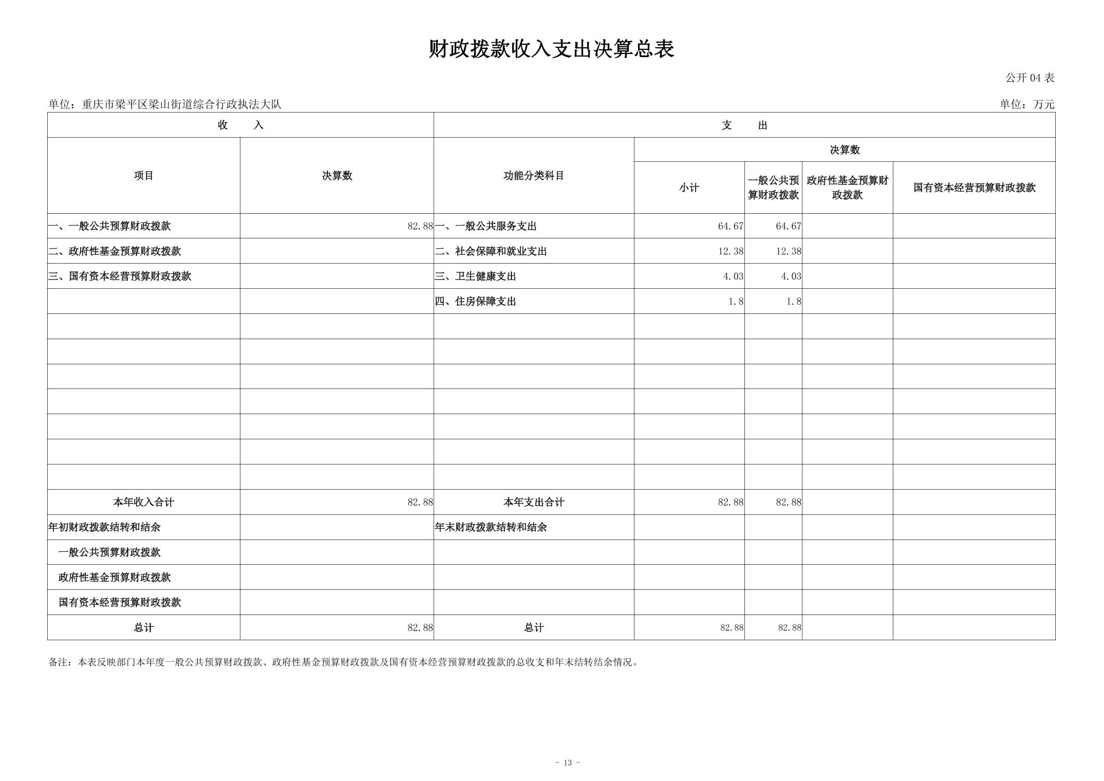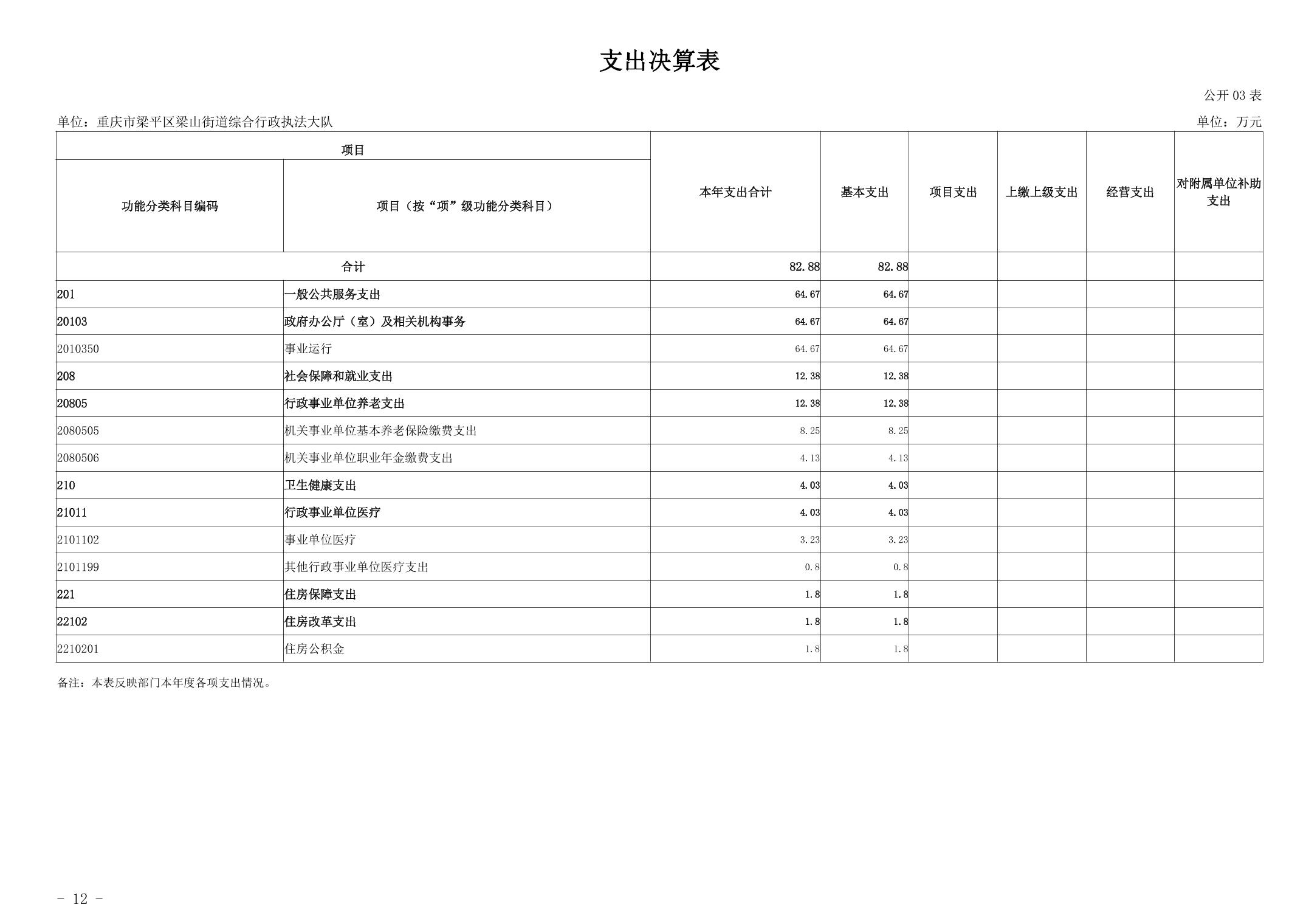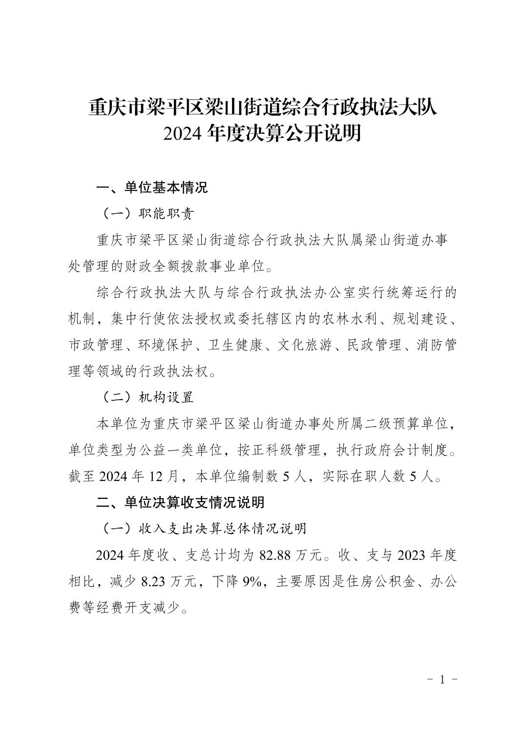 | 標題 | 重慶市梁平區梁山街道綜合行政執法大隊2024年度決算公開說明 |