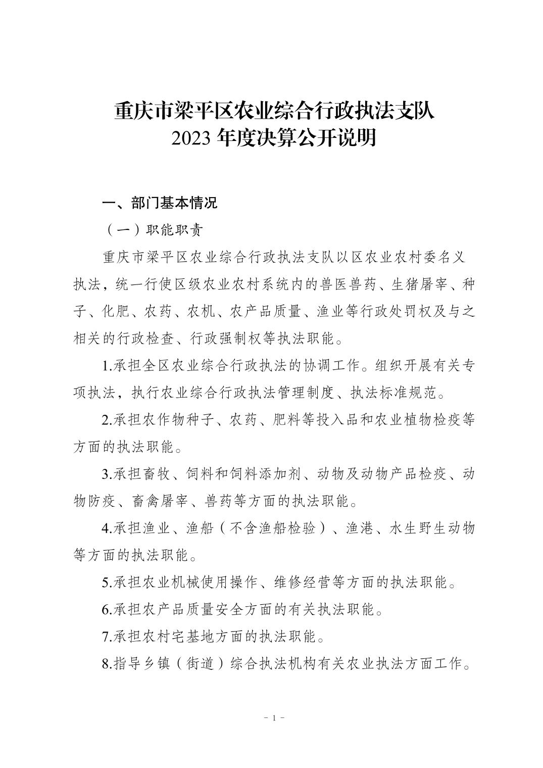 | 標(biāo)題 | 重慶市梁平區(qū)農(nóng)業(yè)綜合行政執(zhí)法支隊(duì)2023年度決算公開說明 |