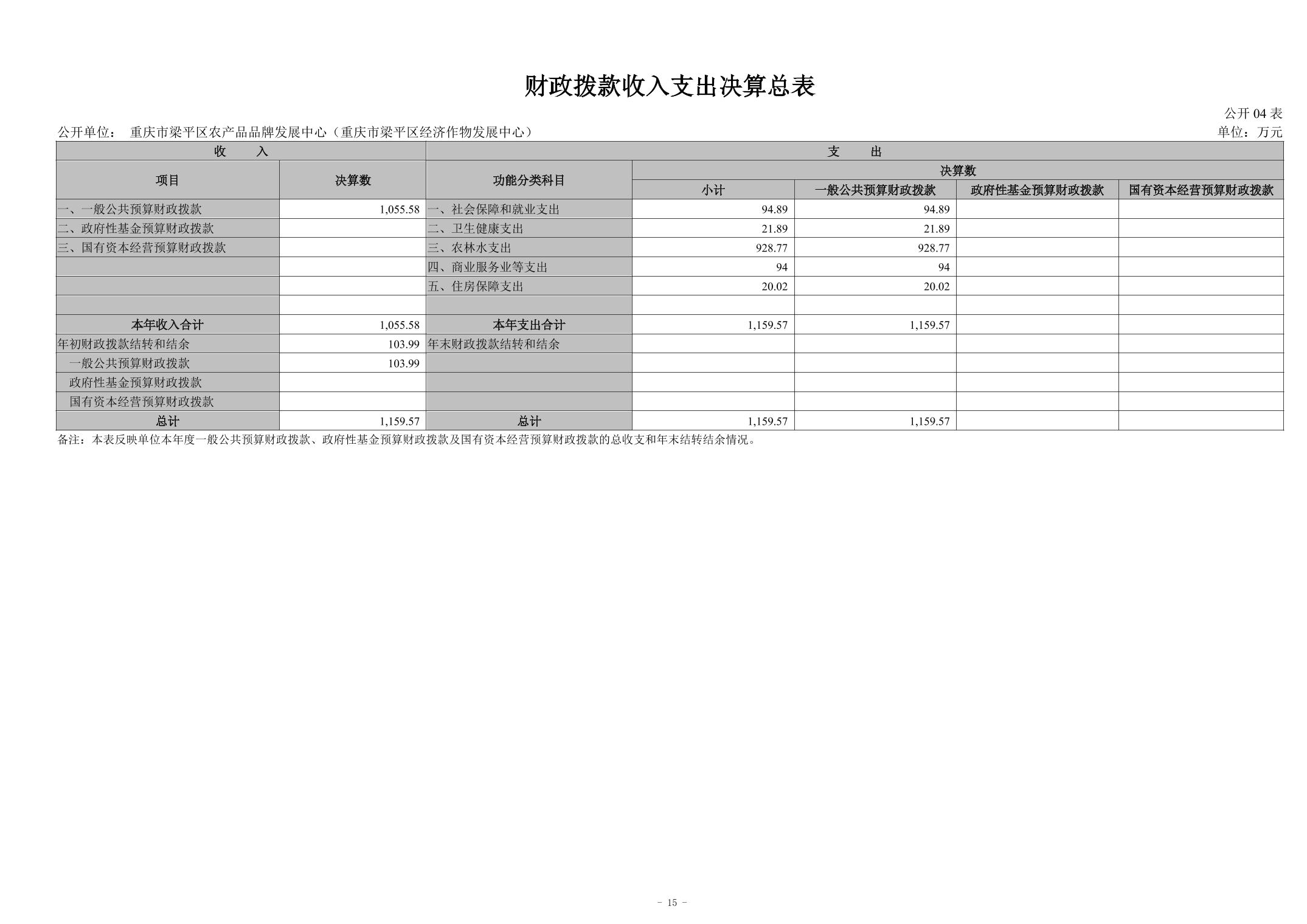 | 標題 | 重慶市梁平區農產品品牌發展中心(重慶市梁平區經濟作物發展中心)2023年度決算公開說明 |