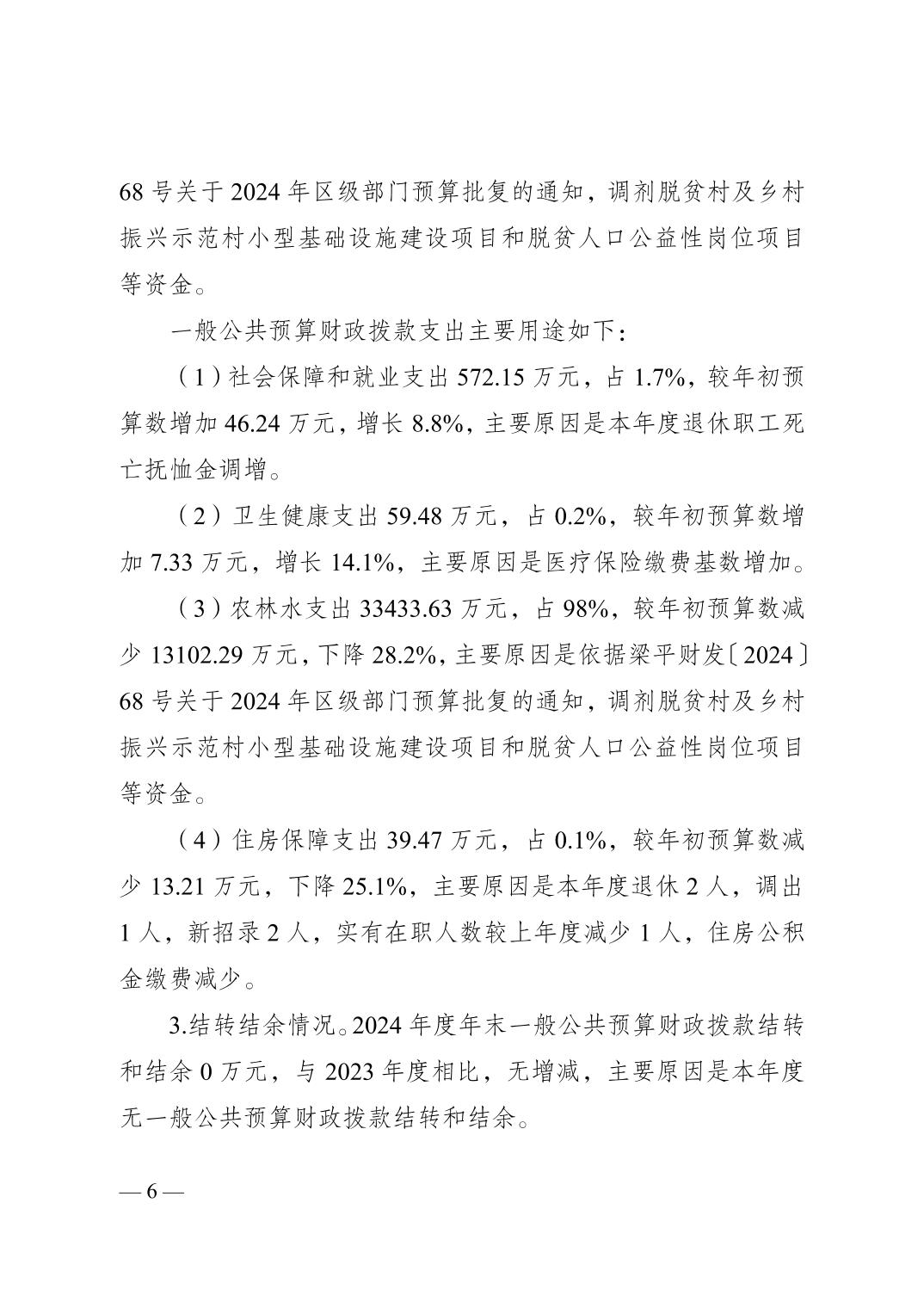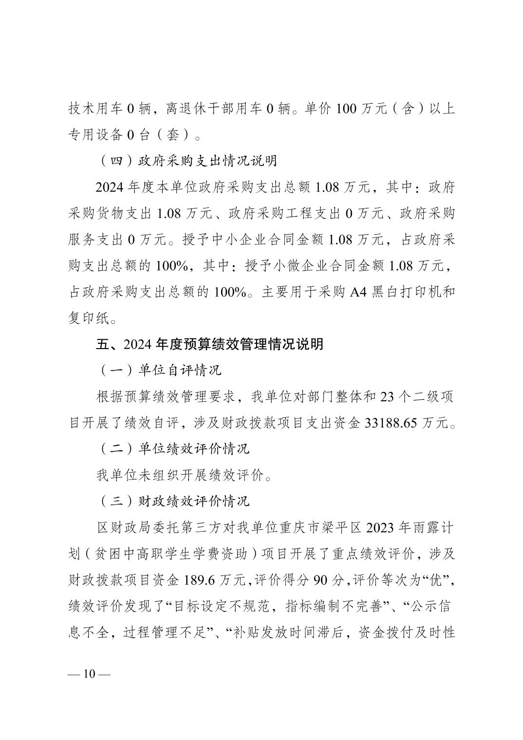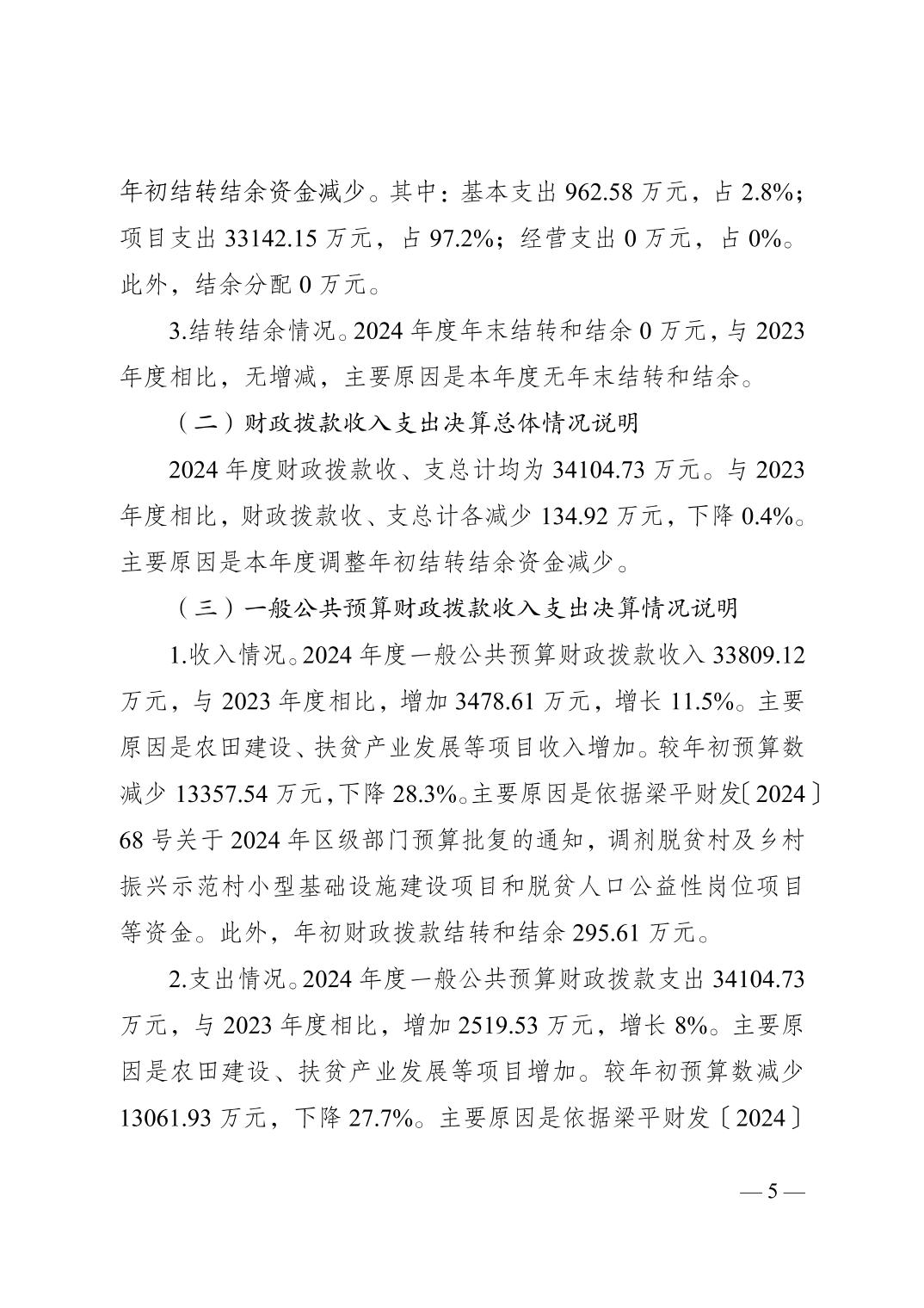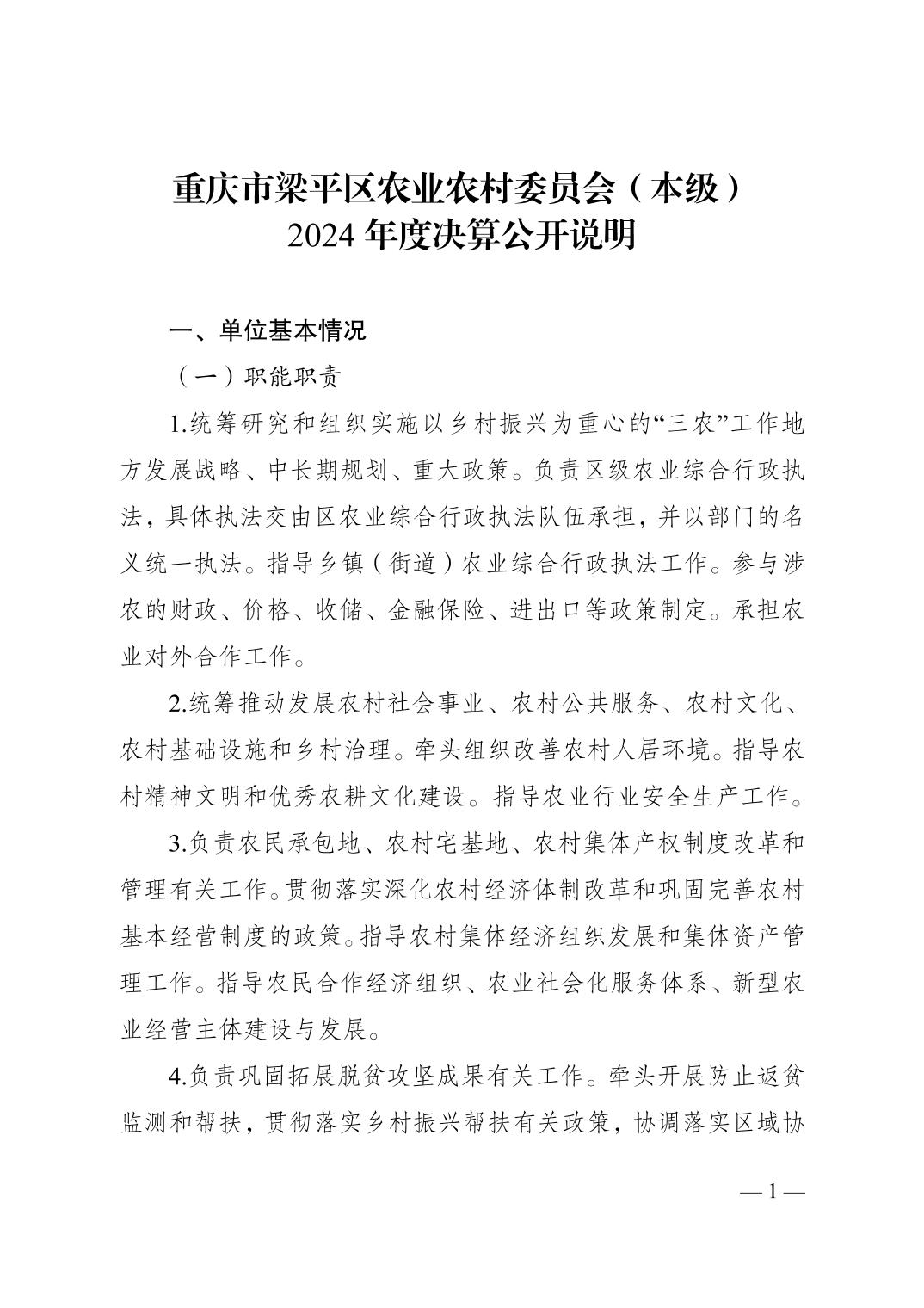 | 標(biāo)題 | 重慶市梁平區(qū)農(nóng)業(yè)農(nóng)村委員會(huì)(本級(jí))2024年度決算公開說明 |